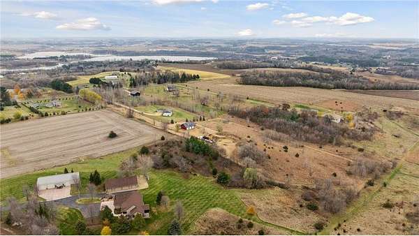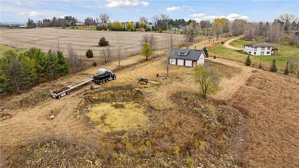 This stunning property spans just over 7 acres and offers breathtaking far-range views to the west, making it the perfect canvas for your dream home. The site is already equipped with a three-car garage with large loft area and walk-up staircase, a well, and electricity, providing a solid foundation to get started. The custom concrete floor in garage is prepped for in-floor heat, just needs a boiler! The third stall has an in-ground car hoist that is ready once you bring your air compressor. Bonus---200 amp service inside garage, just needs wiring completed to your specs. Whether you envision a walkout design or another custom layout, the possibilities are endless with an open-build option. Building site has been partially excavated ready for you to finish off. Located conveniently close to Hudson and Roberts, with easy access to I-94, this lot combines serene countryside living with unbeatable accessibility. Only available due to relocation. A quick close is possible, so don’t miss this incredible opportunity!