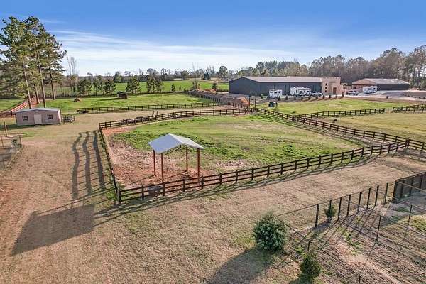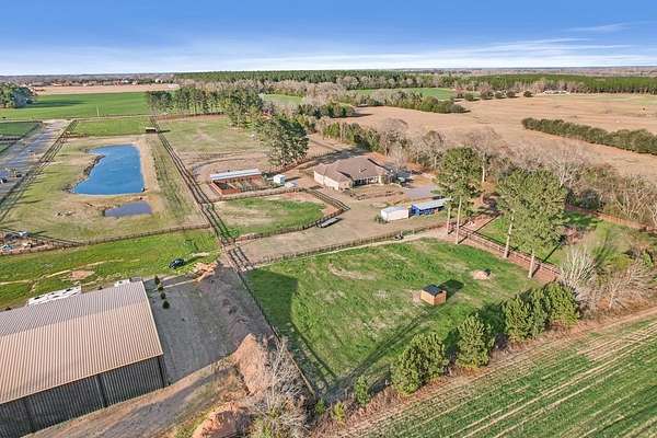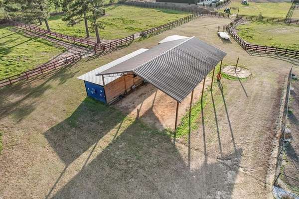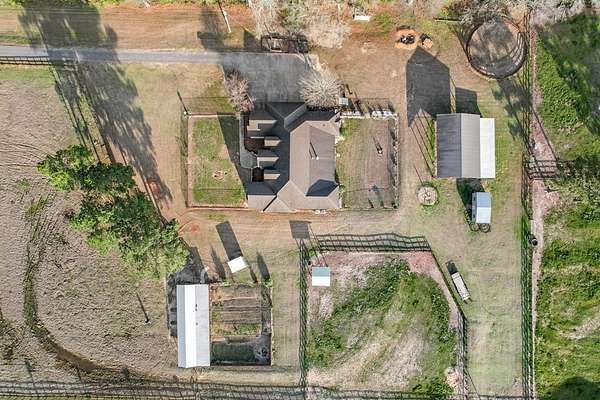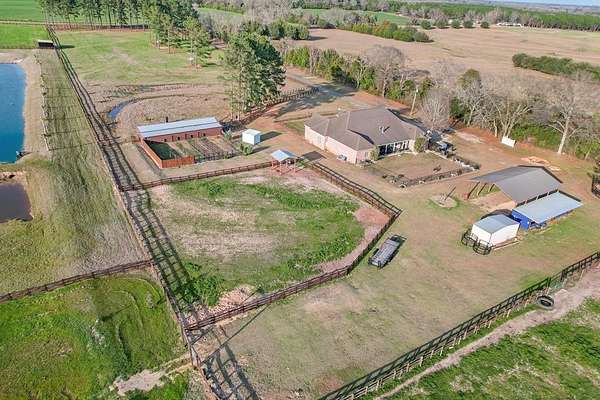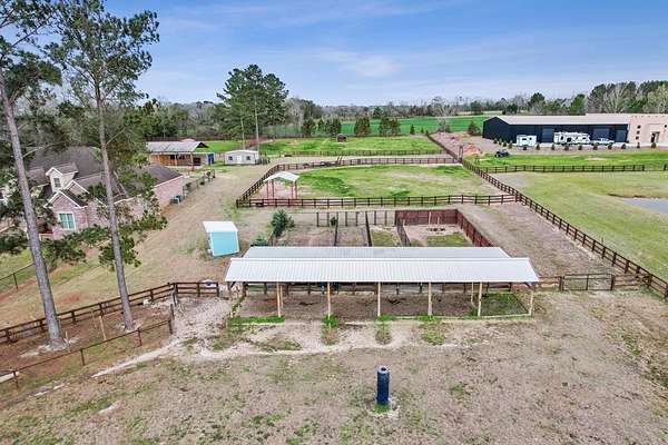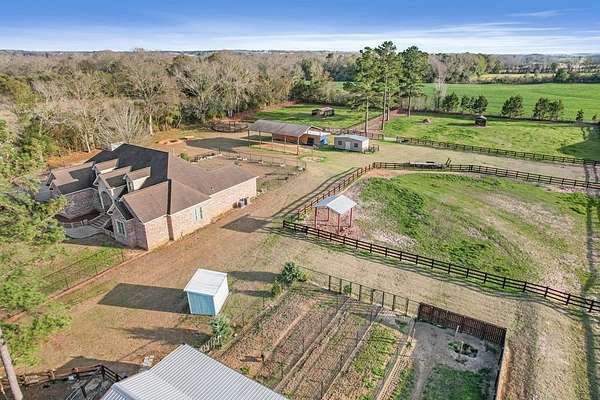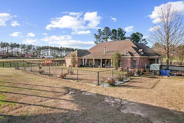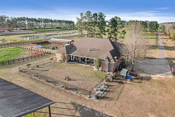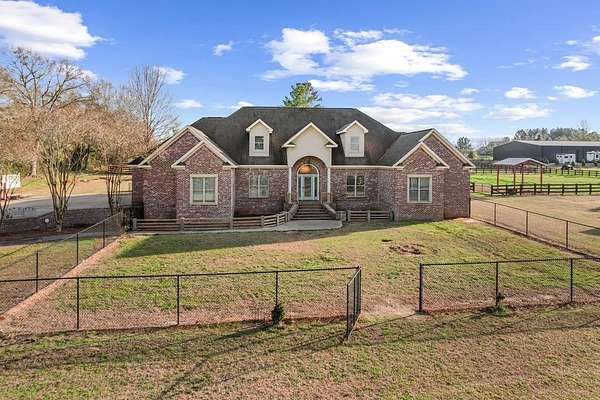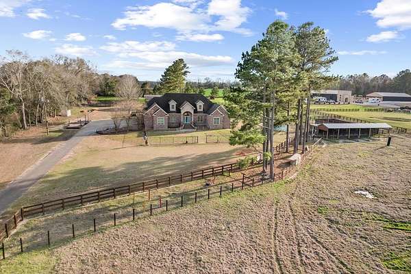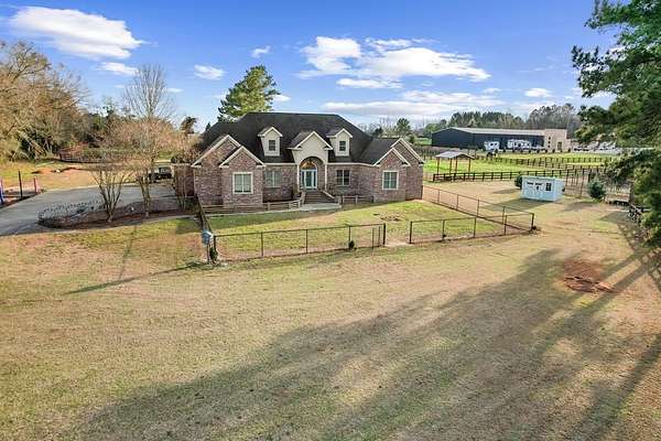 Experience the essence of refined country living at this exceptional 10 acre equestrian estate. This custom built home offers an impressive 5,757 square feet of thoughtfully designed space, featuring 4 spacious bedrooms, 4.5 baths, a private office, and an upstairs bonus/playroom for flexible living. Rich hardwood floors flow throughout the home, leading you into a large, well appointed kitchen with granite countertops and ample storage, perfectly designed for both everyday living and entertaining. Formal dining and formal living rooms add timeless elegance. While two fireplaces keep you warm inside, one creates warmth and ambiance on the back porch overlooking the fenced in backyard. Modern conveniences include Rinnai hot water and a 3-car garage. Step outside and you'll find an entertainer's dream, complete with a welcoming back porch overlooking your private acreage, the perfect setting for gatherings or quiet evenings at sunset. This property is fully equipped for equestrian living with a 4-stall horse barn, a round pen, multiple pole barns, ample storage and fenced pasture. A 5-bay indoor/outdoor dog kennel system adds even more versatility. This is more than a home, it's a private estate where luxury, land, and lifestyle come together seamlessly.