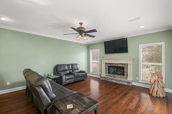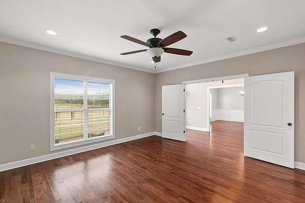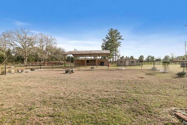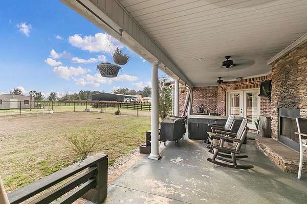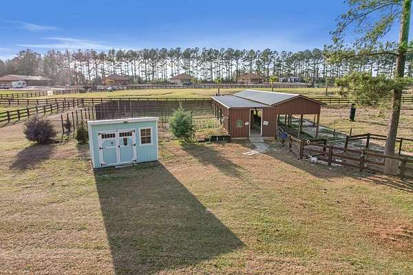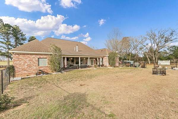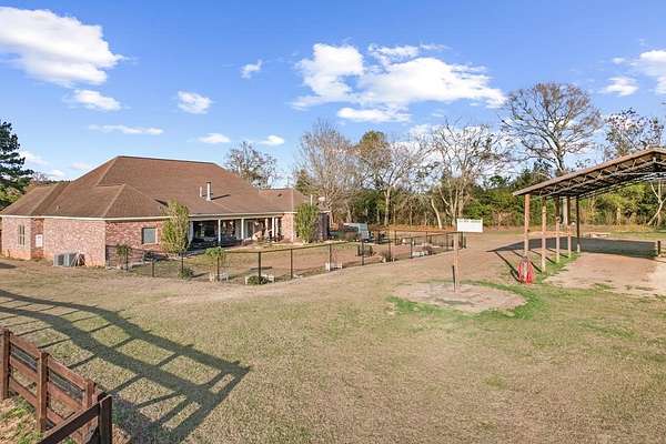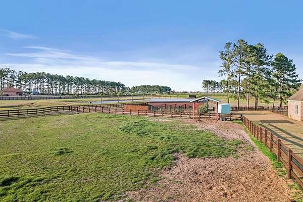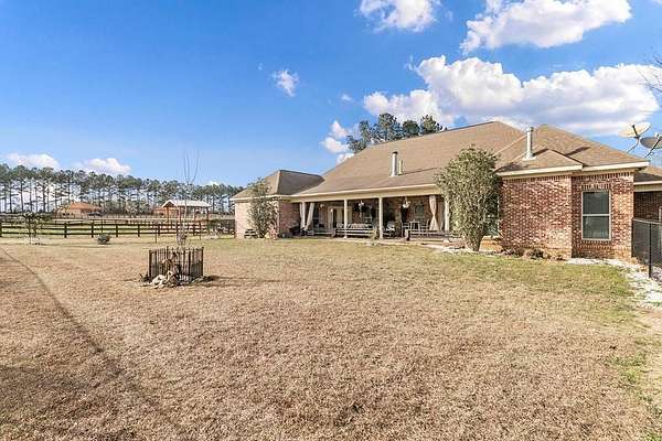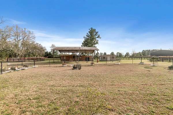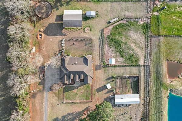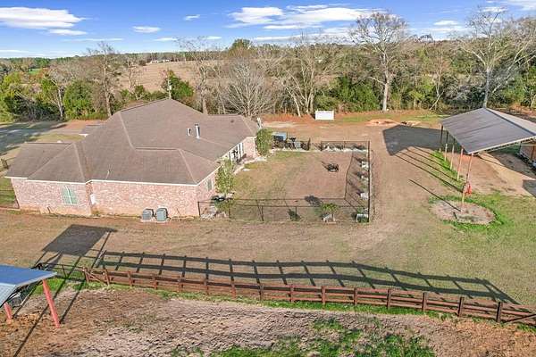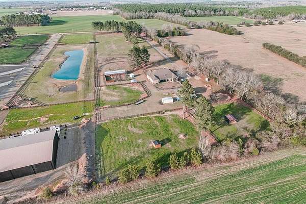 Experience the essence of refined country living at this exceptional 10 acre equestrian estate. This custom built home offers an impressive 5,757 square feet of thoughtfully designed space, featuring 4 spacious bedrooms, 4.5 baths, a private office, and an upstairs bonus/playroom for flexible living. Rich hardwood floors flow throughout the home, leading you into a large, well appointed kitchen with granite countertops and ample storage, perfectly designed for both everyday living and entertaining. Formal dining and formal living rooms add timeless elegance. While two fireplaces keep you warm inside, one creates warmth and ambiance on the back porch overlooking the fenced in backyard. Modern conveniences include Rinnai hot water and a 3-car garage. Step outside and you'll find an entertainer's dream, complete with a welcoming back porch overlooking your private acreage, the perfect setting for gatherings or quiet evenings at sunset. This property is fully equipped for equestrian living with a 4-stall horse barn, a round pen, multiple pole barns, ample storage and fenced pasture. A 5-bay indoor/outdoor dog kennel system adds even more versatility. This is more than a home, it's a private estate where luxury, land, and lifestyle come together seamlessly.