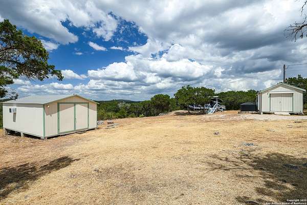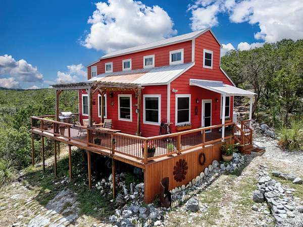 *Seller offering contribution for buydown rate for buyer*Remarkable property on 2 parcels totaling 24.69 acres of pristine hill country land with breathtaking views, incl. Medina Lake, surrounded by nature and wildlife and opportunities for hunting. Adorable 2-Story Hill Country home has been totally remodeled including windows, walnut cabinets, stainless appliances incl. gas cooking and granite countertops. Huge wrap deck with pergola cover and lower free-standing deck (reinforced for hot tub). RV pad w/ full hookups (electric,sewer,water), 2 sheds and 1 workshop (all 3 have drywall, electricity & AC window units - 1 closest to RV has washer/dryer hookups) Property has a great building site for a custom home-w/views of lake. APPRAISAL $665,000 No HOA fees. A full list of property features is attached. TAXES COMBINED FOR 2 PARCELS AND REFLECTS TOTAL AMOUNT