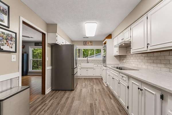 Welcome to this well-maintained home located in the desirable Smokerise subdivision on over 2 acres, just off West Bon Acre Road in one of the most convenient locations in southern Harris County. Inside, the kitchen offers LVP flooring, quartz countertops, stainless steel appliances, a farmhouse sink with sprayer, and a tiled backsplash-perfect for everyday living and entertaining. Just off the kitchen, you'll find a dedicated office space, ideal for working from home or added flexibility. Quartz countertops continue into the bathrooms, creating a consistent, updated feel throughout. The primary suite features a tiled walk-in shower, while additional living space is provided by a sunroom, offering a great spot to relax or entertain. Step outside to a fully fenced backyard built for enjoyment, complete with a pool featuring a liner that is only two years old and expanded concrete surrounding the pool area for added functionality. Additional highlights include a two-car garage and windows with a lifetime warranty through Window World.