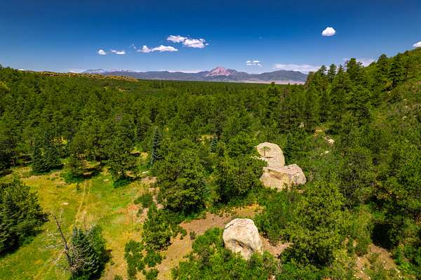A cornerstone Wahatoya landholding, the Doubloon Ranch rests in the shadow of the Spanish Peaks just south of La Veta. Perched on the edge of the Wahatoya Mesa, the home provides unsurpassed mountain views. The Ranch's 2,570 Deeded Acres consist of varied terrain and elevations. The lower end of the ranch starts at 7200' with gambles oak, ponderosa pine & pinion with several canyons & large open meadows enjoyed by the wildlife. The upper end of the ranch is an alpine paradise where it crests at 9400' adjoining NF and the Spanish Peaks Wilderness area where bear, turkey, elk and deer are abundant. Aspen lined meadows and towering pines accompanied by several deeded springs creates a wildlife haven. The main home is breathtaking & built to the highest standard where it has room and accommodations to host large crowds or enjoy the natural serenity in solitude. A guest house, horse barn, pipe fencing and shop round out the improvements.