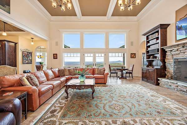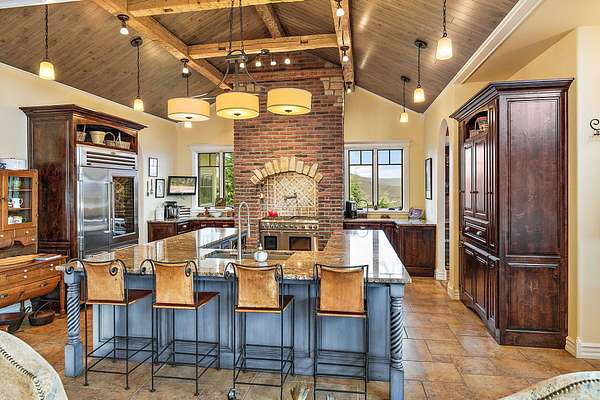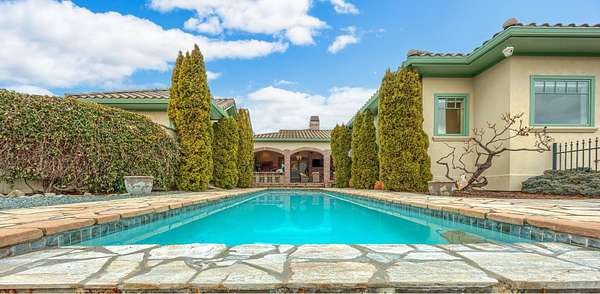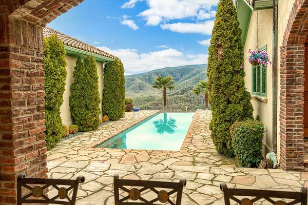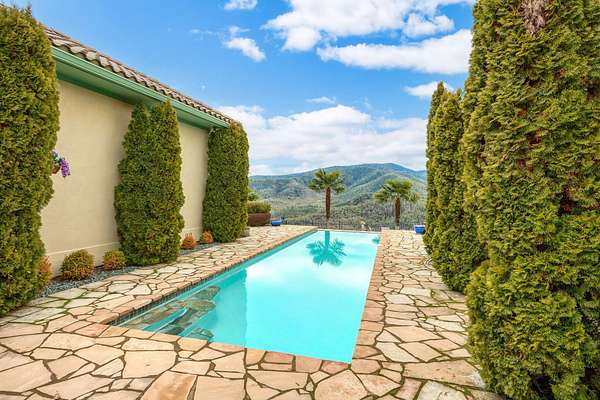 Unparalleled 360-degree views. Situated on 61+ acres, this custom, one-owner home boasts every attention to detail. Hard to find Tuscan-style villa with undeniable privacy. Perfect window placement frames views of the valley including Mt McLoughlin. A versatile floor plan is anchored by an impressive great room featuring box beam 18' ceiling & eye-catching wood burning fireplace as well as a grand kitchen, complete with top-of-the-line stainless appliances, butler's pantry, extensive counter space for prep & entertaining plus formal & informal dining. Roomy primary suite with soaking tub, tiled rain shower, two walk-in closets. Outdoor entertaining in this home is a dream! Temperature controlled covered lanai w/automatic screen for year around living, outdoor kitchen & fireplace, newly refinished heated infinity pool, propane fireplace & the list goes on. Inviting detached guest space w/ private patio. Large garden + greenhouse. Plenty of space for horses. This one is better than new!