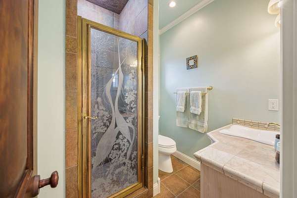 - Breakfast Bar, Built-In Features, Ceiling Fan(s), Double Vanity, Dry Bar, Enclosed Toilet(s), Granite Counters, In-Law Floorplan, Kitchen Island, Linen Closet, Open Floorplan, Pantry, Primary Downstairs, Tile Counters, Tile Shower, Vaulted Ceiling(s), Walk-In Closet(s), Wet Bar, Wired For Data, Wired For Sound