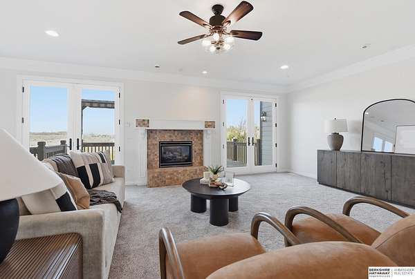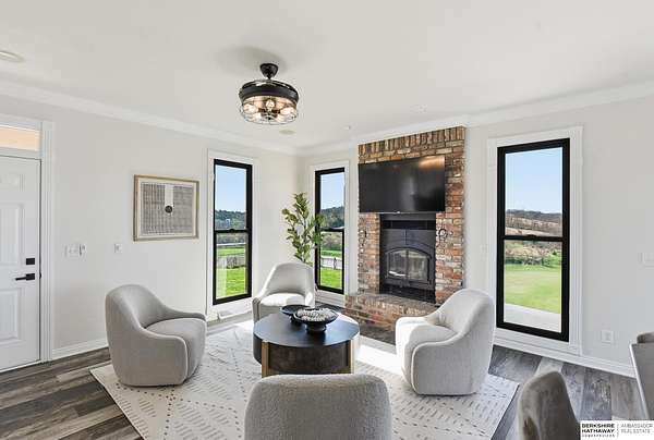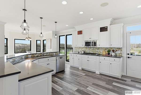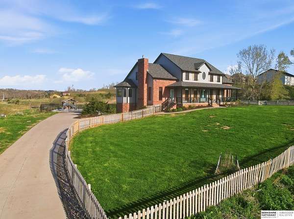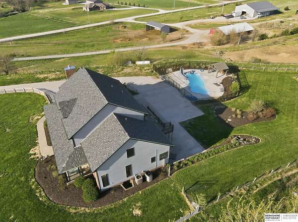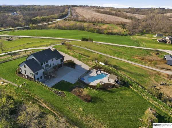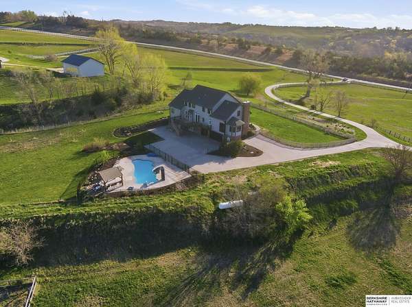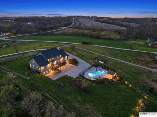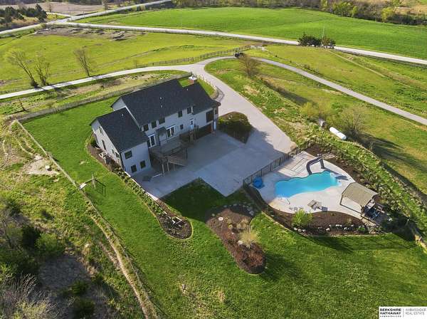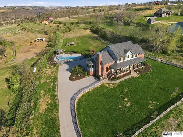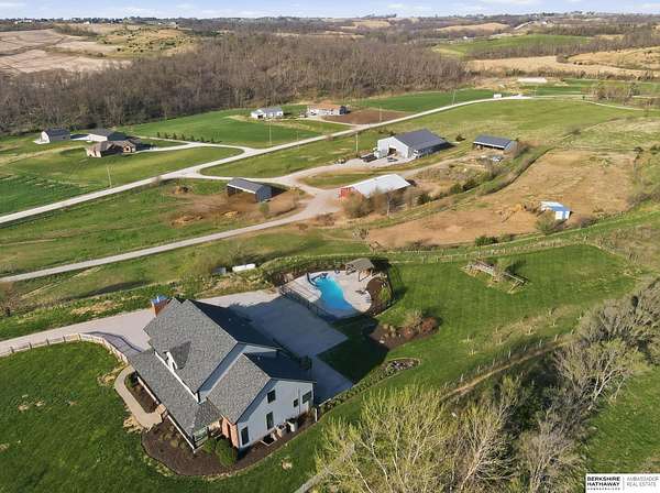Libby Long, M: 402-699-7394, libby.long@bhhsamb.com, https://info@BHHSamb.com - Arguably the best equipped and most beautifully appointed acreage in the metro area. 1.14 mil levy w all paved roads just 18 minutes to Omaha- making this an incredible investment. This expansive estate is situated on 16.69 acres&ftrs a stunning 1.5 story home. List of amenities & updates is extensive: new Anderson windows, roof, carpet, an in-ground heated salt water pool, fully-insulated newer 80x60 outbuilding complete w half bath & a 20x30 paint space in shop, a covered lean-to for RV or equipment storage, & finally, a barn w half bath & horse arena. Chef’s kitchen w quartz counters, stainless appliances, gas cooktop, dual ovens, integrated commercial refrigerator and hearth room area. Primary bedroom boasts his & her closets, huge windows, tall ceilings & updated ensuite w walk in shower and jetted tub.Outbuilding features 5RV plug-ins, dedicated dump station. This private retreat, featuring a heated s