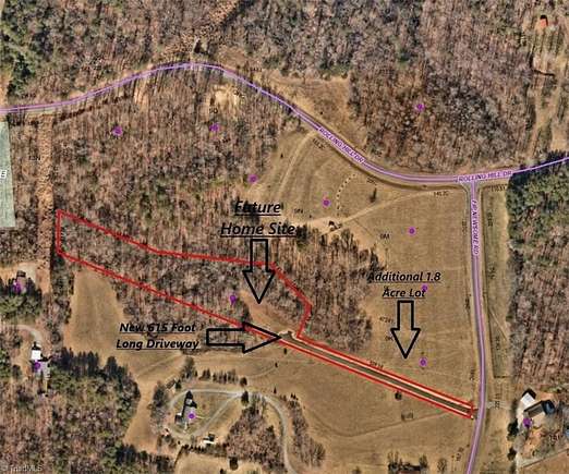 From US Highway 52 at South Main Street/Doral Drive, Exit #123 : continue south on Doral Drive 1.5 miles and turn right onto Rolling Hill Drive and property will be on left and right in 1/2 mile
