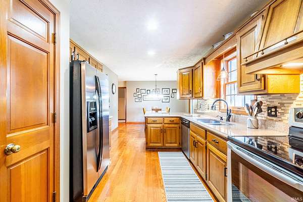 OPEN HOUSE 11/22 4-6pmBeautiful 5-Bedroom Home on 1.59 Acres in Sherwood Oaks - West Noble Schools! Welcome to this stunning home nestled in the desirable Sherwood Oaks subdivision.Situated on a spacious 1.59-acre lot surrounded by mature trees, this property offers both privacy and natural beauty in the West Noble School District. Inside, you'll find 5 bedrooms and 2.5 baths. The main level features a cozy family room with a fireplace, a convenient laundry room, and a bright kitchen with great flow for everyday living. The finished basement adds even more living area and includes a second entrance from the garage. This home includes an attached 2-car garage along with a detached 2-car garage offering attic storage. The detached garage is partially insulated and has a brand-new roof--perfect for extra workspace or year-round use. Recent updates include a new furnace plus newer A/C and water heater. The large yard, mature trees, and open layout make this home both comfortable and inviting.