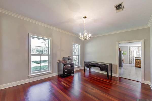 Freshly painted and thoughtfully designed, this 3-bedroom, 3-bath home sits on 2.2 peaceful acres in Flood Zone C, offering a great balance of space, comfort, and flexibility. A covered breezeway connects the carport to the patio and the home - quite a welcoming entry. Inside, the kitchen, breakfast area, and keeping room are open and filled with natural light, featuring a gas range, large pantry, and plenty of counter and cabinet space. The spacious den includes a wet bar and crown molding, making it a comfortable space for everyday use. A formal dining room adds extra flexibility and can easily be used for everyday meals or as a flex room (office/craft/playroom) Brazilian cherry wood floors run throughout the home, adding warmth and character. The secondary bedrooms are connected by a Jack-and-Jill bath, while the oversized primary suite includes a sitting area, dual vanities with knee space, a spacious bath, and a large walk-in closet. Outside, you’ll find a covered patio, a nicely maintained yard, and a charming playhouse. The property also includes a barn with a two-car garage and a guest apartment above—ideal for guests, extended family, or a private workspace. A whole-house generator adds an extra level of convenience and peace of mind. This property offers a unique opportunity to enjoy a quiet setting with room to spread out while still having all the features needed for everyday living.