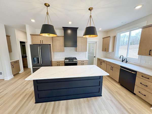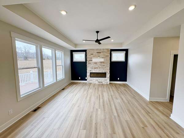 JTB Homes presents the new Harbor Springs plan in the Caledonia School district. Located on a quiet side street on 2.5 acres, enjoy the beautiful country in this new ranch home. 5 beds and 3.5 baths throughout this home. The main floor features the primary bedroom. This bedroom has a tray ceiling to go with its own bathroom. In the bathroom you find a ceramic tile shower with a bench, a large walk-in closet and double-sink vanity. The kitchen has mudroom access with a large island and pantry. The tray ceiling is also in the living room, where you find a relaxing electric fireplace. The MI room allows you more room to relax and look at the country setting. 2 more bedrooms and a full bath round out the main floor. Downstairs you find a finished rec room with a wet bar, 2 finished bedrooms and another full bathroom. Along with plenty of storage, this home is worth taking a look at. Reach out for a private showing! See documents for selection photos. Estimated completion in April