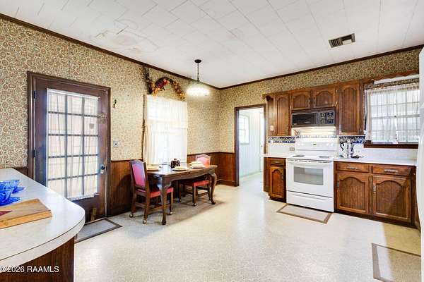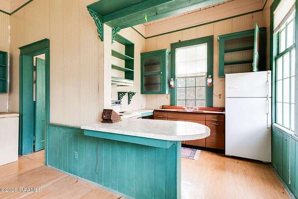 Step into a one-of-a-kind 4-bedroom, 5-bathroom home rich in history and character, thoughtfully constructed in the early 1970s using reclaimed materials from the historic ''Martha's Manor'' of Bayou Chicot. Originally built in the late 1800s or early 1900s, the manor was carefully dismantled, and its timeless craftsmanship lives on throughout this residence. Inside, you'll find original doors (with the exception of the front door), vintage door knobs, wood trim, beams, walls, and beautifully preserved wood flooring--all contributing to the home's authentic charm. Every detail was intentionally curated, from period-style and antique wallpaper, lovingly installed by hand, to the unique bathroom vanities crafted from repurposed vintage dressers and sideboards. The construction itself reflects the dedication and skill required to incorporate century-old materials into a functional and lasting home. Adding even more character, the outdoor kitchen was once the original dining room of Martha's Manor. This remarkable structure, estimated to be over 150 years old, was relocated to the property and adapted with thoughtful updates while preserving its original windows, woodwork, and trim. A rebuilt fireplace remains in its original location, offering a true connection to the past. Would be great for a wedding venue. This property is a rare opportunity to own a piece of history, blending vintage elegance with timeless craftsmanship in a truly unique 4-bedroom, 5-bathroom setting.