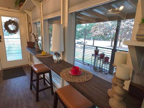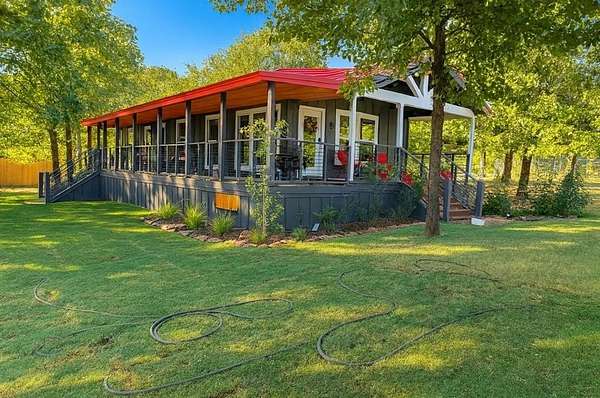 Discover peaceful country living at 777 Caddo Hills--where privacy, nature, and endless potential come together. This fully furnished 2020 2bd, 2 bath modular home sits on 6.74 acres of beautifully wooded land. This gated property features matured trees, abundant wildlife, and serene views of your own private pond. Deer frequently roam the property, creating the perfect backdrop for enjoying your morning coffee on the spacious porch.