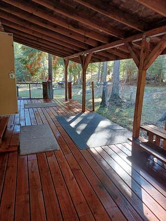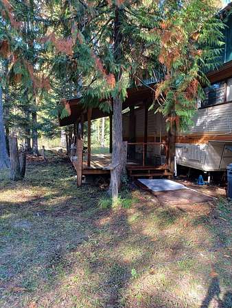 Yaak River Vacation spot awaits you. This .81 acre lot has a 40 foot 5th wheel set up under a 12x 42 foot roof and Porch for you to enjoy the peace and quiet of the Yaak. 5th Wheel has power and a well hooked up and an outhouse. Property has been perc tested. This nice treed lot has lots of potential. Within walking distance to millions of Acres of USFS land to enjoy hunting, cross county skiing, trail riding and all the outdoor sports, plus fishing and kayaking from your own river front beach.