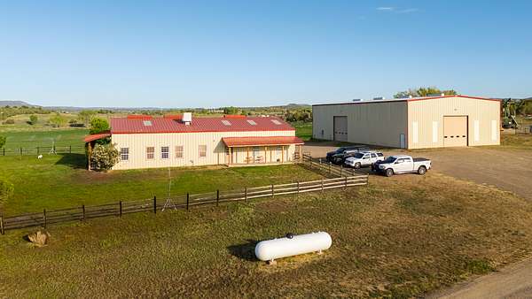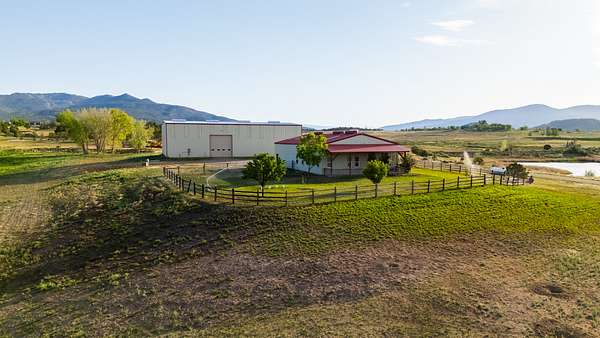 A two bedroom, one bath home and a 60'x100? metal shop sit atop the high point on the ranch overlooking three of the ponds. The home features a large living room, bonus room and a large covered, east facing patio that is set to deliver awe inspiring views of the San Juan mountain range. There is large, southwestern floor tile throughout, granite countertops in the kitchen and plenty of natural light shining through to the living room. There is also an oversized, attached garage area with storage rooms and plenty of space for vehicles, gear and equipment, all without going outside. The exterior of the home features an easy to care for metal roof and a fenced and irrigated lawn.