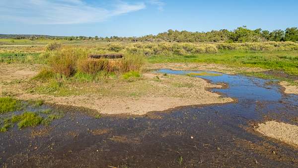 Sambrito Creek runs for more than a half mile through the western portion of this ranch. The creek meanders through tall cottonwood trees, sage and native grasses. The creek gets to about 8 to 12 feet wide under normal flow.