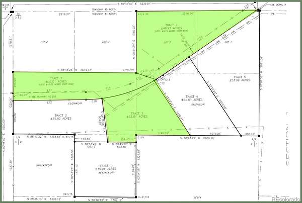 - Tract 7: 48.97 acres north of Highway 285, east of Tract 6, also accessible directly from Highway 285 and bordering BLM land