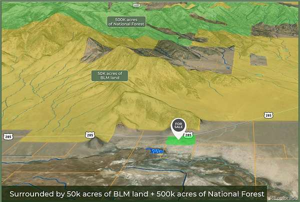 Comparable 40-acre parcels along Highway 285 near Salida and Buena Vista have recently sold in the $300,000–$500,000 range. Properties offering highway access, elevation, and adjacency to public land are limited within the San Luis Valley.