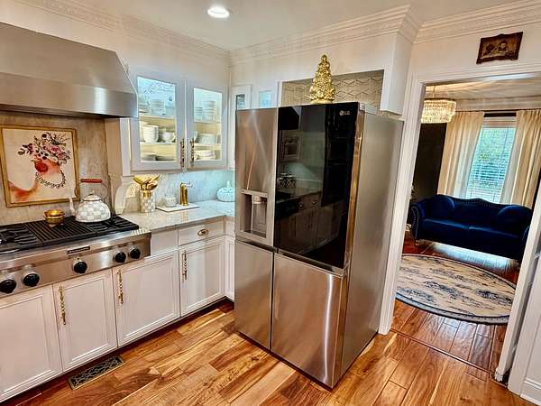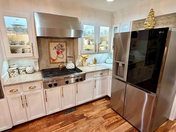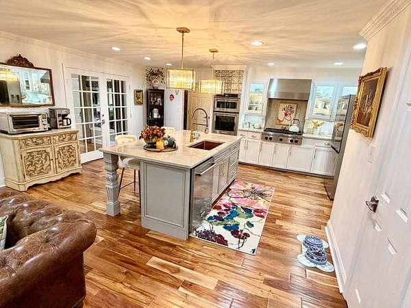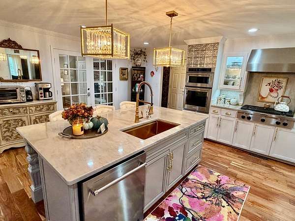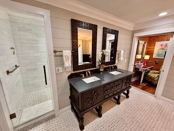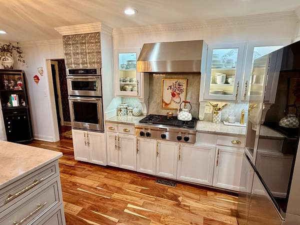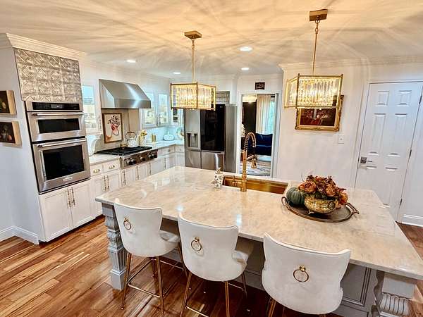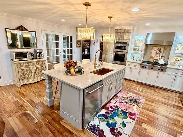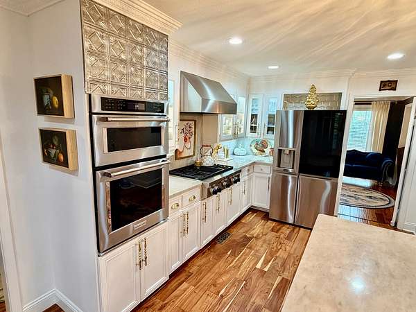 Step into timeless elegance and southern sophistication in this beautifully updated 4-bedroom, 3-bathroom home nestled on 3.52 acres in Thomasville. From the moment you enter through the grand foyer, you'll be captivated by the attention to detail, elegant lighting, and refined finishes that make this home truly special. The kitchen is a showstopper, featuring marble countertops, a large island with a gold farmhouse sink and faucet, top-of-the-line stainless appliances including a double oven and gas stove, and a spacious walk-in pantry. The formal dining room flows seamlessly into an inviting sitting area, perfect for entertaining guests or enjoying family dinners. Two luxurious master suites offer exceptional comfort - with marble vanities, custom tile showers, soaking tubs, and walk-in closets. Every bathroom has been designed with both style and function in mind, featuring elegant marble countertops and high-end fixtures. The home's layout offers multiple living areas, including a cozy sunroom overlooking the backyard and a formal living room centered around a natural gas fireplace. Gorgeous engineered hardwood floors and detailed crown molding extend throughout the home. Additional features include: oGorgeous copper roof (installed 2022) oHVAC (2 years old) with dehumidifier and termite bond oTankless water heater and Generac generator oDouble car carport, circle drive, and rear driveway for easy access oShop building at the back of the property oCity water & sewer, natural gas, and meticulously landscaped grounds Every inch of this 3,027 sq.ft. home has been thoughtfully maintained and freshly repainted, offering a perfect blend of charm and modern luxury.