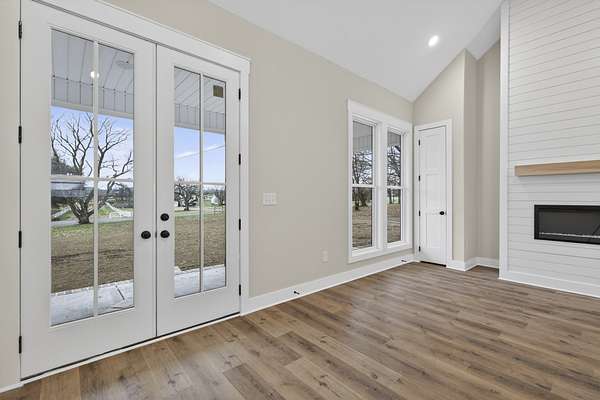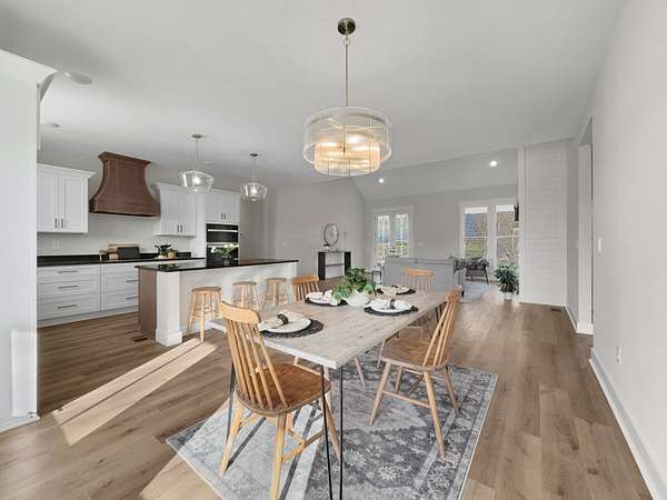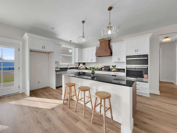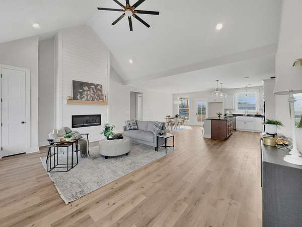 Beautiful new home on 2.39 acres with 40x70 shop! This 2,554 sq ft home offers 3 bedrooms and 2.5 baths on the MAIN FLOOR plus an UPSTAIRS BEDROOM, FULL BATH AND BONUS ROOM. Enjoy hardwood floors throughout, open-concept living with vaulted ceiling and electric fireplace. Gourmet kitchen with induction cooktop, wall oven/microwave, large island, and beautiful cabinetry. Luxurious primary suite features tile shower, soaking tub, and double vanities. Secondary bedrooms share a Jack & Jill bath. 9’ ceilings, 8’ doors, and spacious laundry off garage. Rocking chair front porch and covered back porch perfect for entertaining. Exceptional quality and value at $749,900—the best new home in Castalian Springs! Grass is AI generated