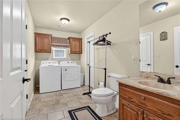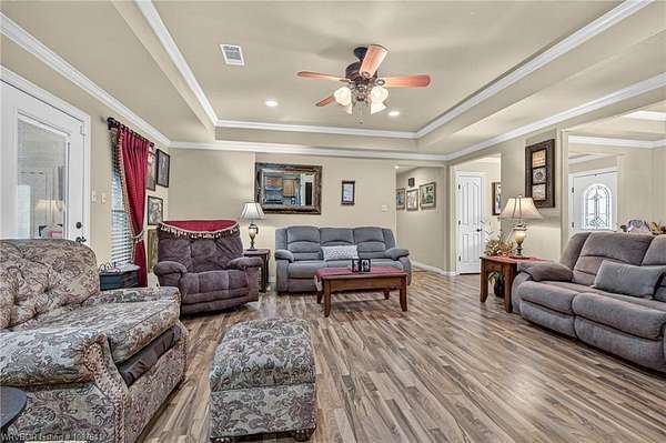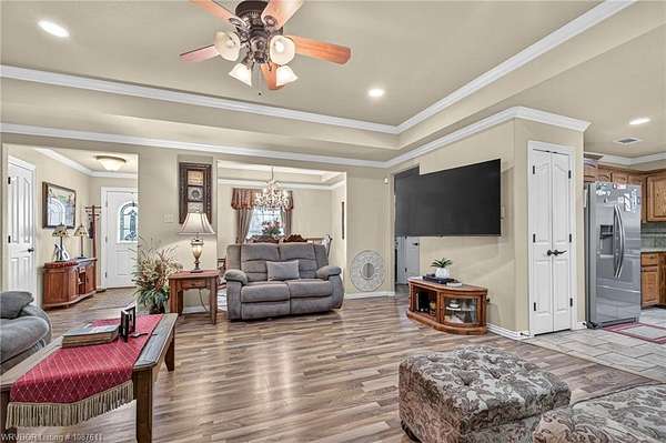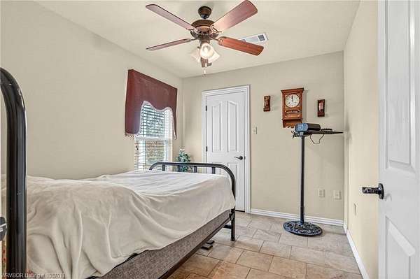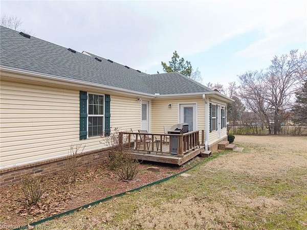 Beautifully maintained 3BR, 2.5-bath home offering approx. 1,904 sq ft, located just minutes south of Fort Smith in Bonanza. Set on a picturesque approx. 1.5-acre lot, this home features a formal dining room, a spacious living room with wood-laminate flooring, and a generous kitchen with stainless steel appliances, ceramic tile flooring and backsplash, and a pantry. The split-bedroom layout places the primary suite and one guest bedroom on one side of the home, with a second guest bedroom and full bath on the opposite side for added privacy. The primary suite includes a coffered ceiling, large walk-in closet, and a private bath with double vanity and walk-in shower. A large laundry room with a convenient half-bath sits just off the garage entry. A 220 sq ft sunroom-currently used as an office/music room-adds flexible living space. Outside, the property includes a 16' x 30' storage building with an attached covered lean-to. Enjoy peaceful mornings on the covered front porch or entertain on the back deck overlooking the expansive yard.