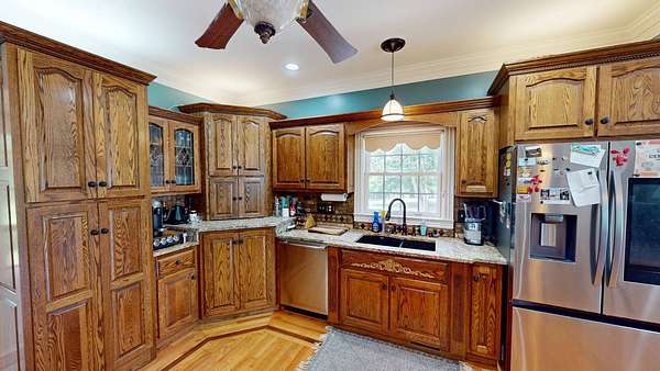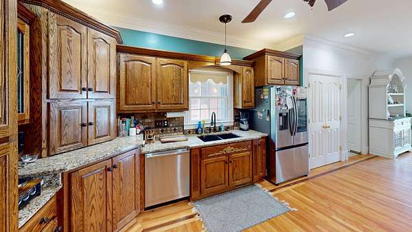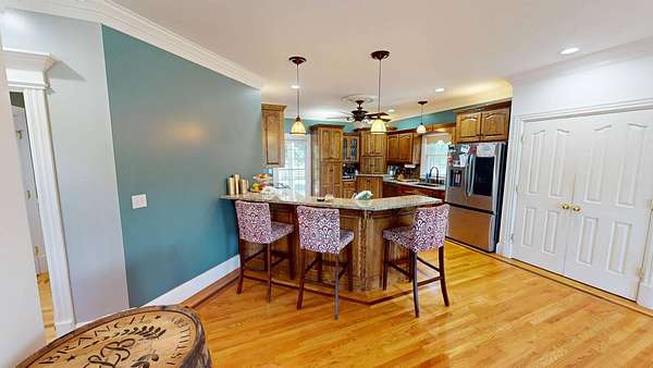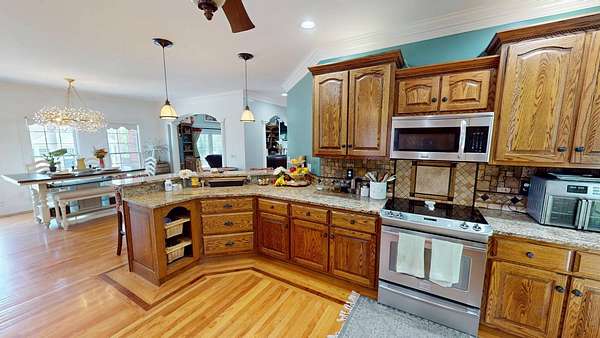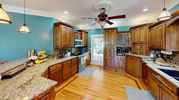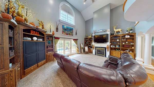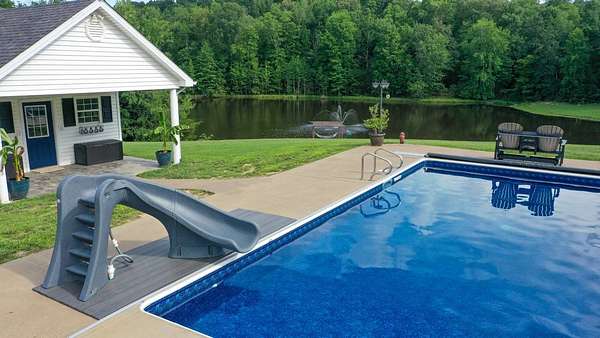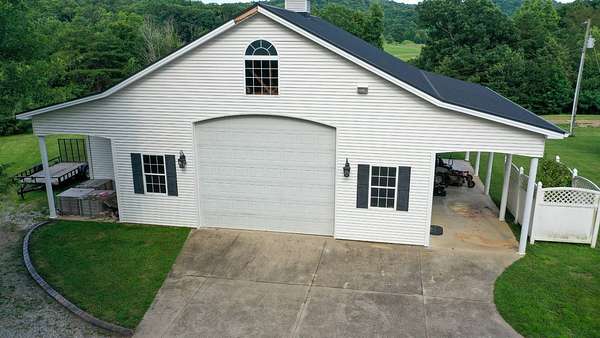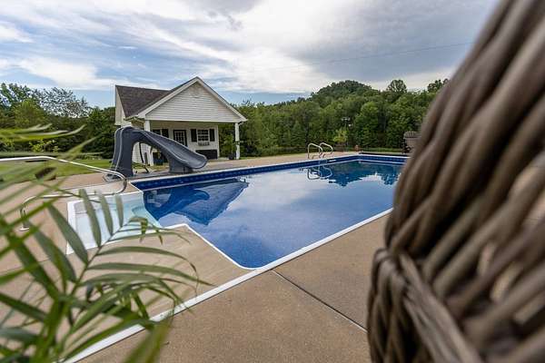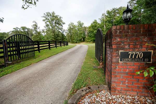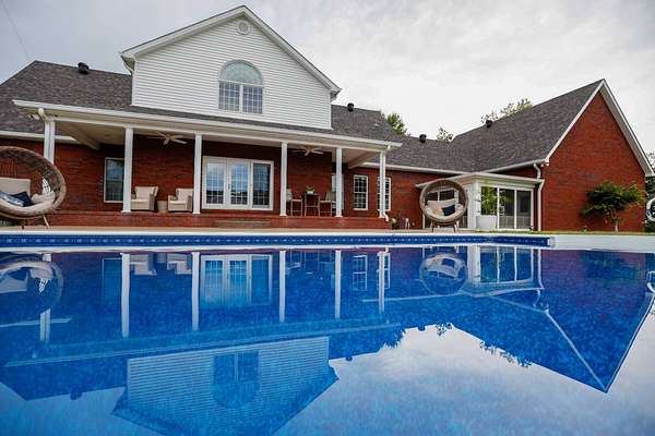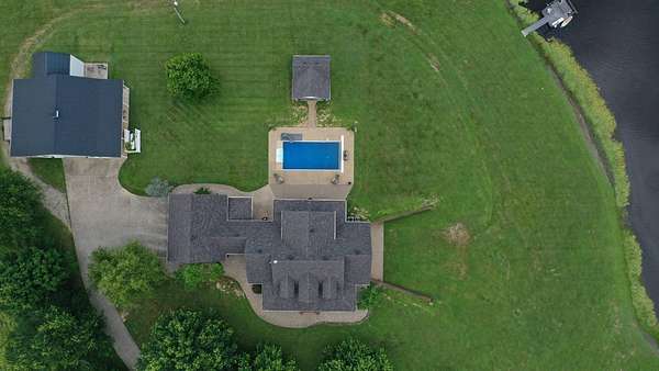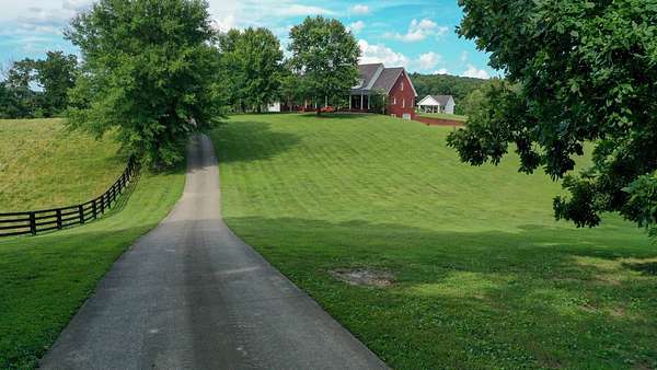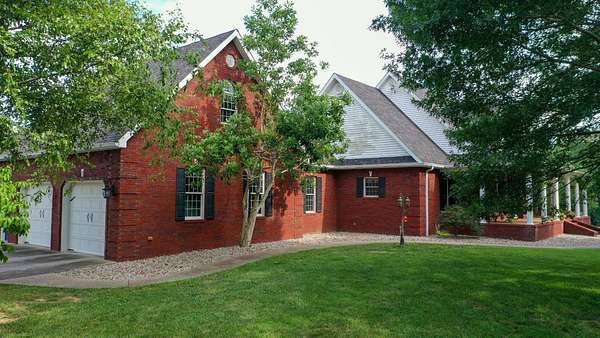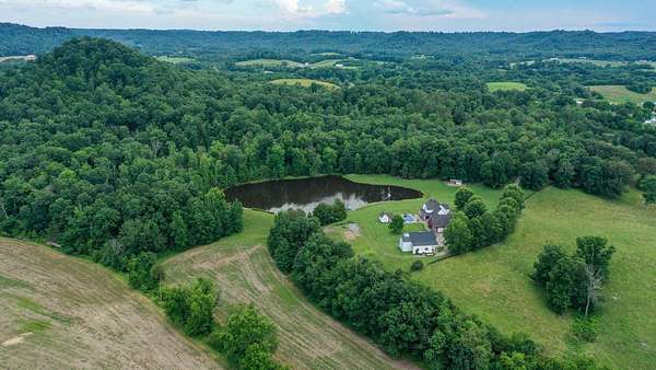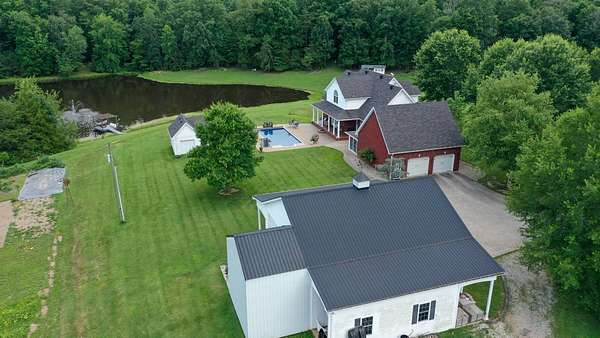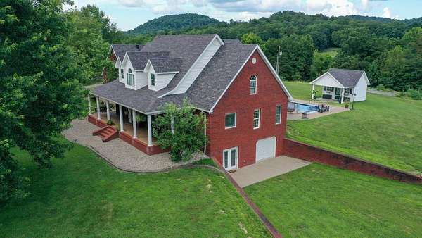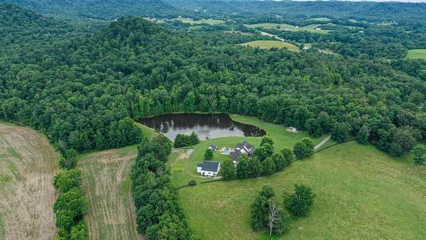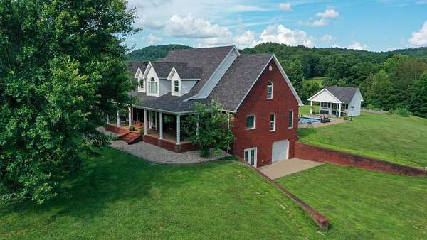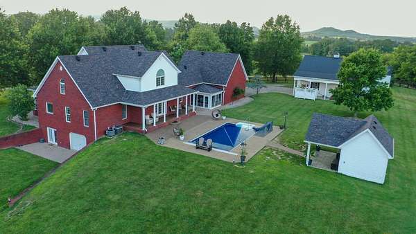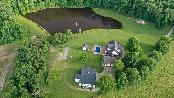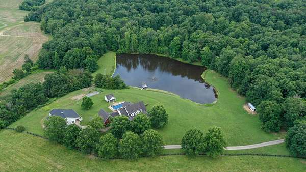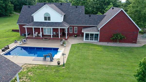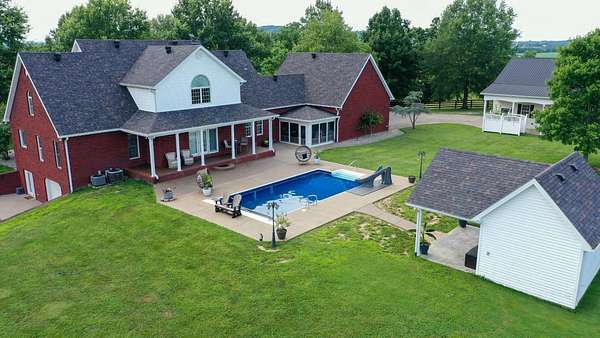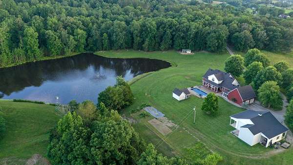 Luxury meets country living in Marion County, Kentucky. Welcome to your dream estate--an expansive home set on 29 picturesque acres of rolling hills, dense woods, and a serene private pond with a dock and fountain. The 5 bedroom, 5 bath beauty blends elegance, comfort and outdoor charm like no other. Inside, enjoy a stylish mix of modern and traditional touches: tray ceilings, sunlit rooms, and a showstopping multicolored wood accent wall perfect for a home office or music space. The gourmet kitchen features oak cabinetry, and stainless steel appliances, while multiple living and dining areas offer endless space for entertaining or relaxing. The luxurious primary suite is a true retreat, and the home boasts many closets--including a bold walk-in with built ins--plus well appointed baths, cozy fireplaces, and unique finishes throughout. Step outside to your private paradise: a stunning in-ground pool with a slide and a pool house with its own lounge and bath. In addition you will find a huge two car attached garage and an awesome workshop that is boat or camper friendly. This one is the perfect mix!!! Live grand. Relax deep. Entertain effortlessly. Welcome home.