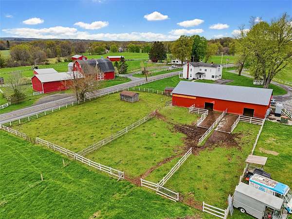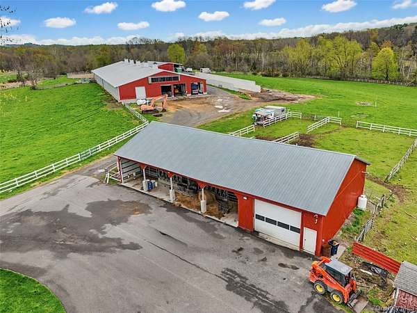 Premier 300-Acre Agricultural & Investment Estate on Route 9 - Turnkey Dairy & Creamery Operation Discover a rare and significant investment opportunity in the heart of the Hudson Valley. This expansive 300-acre property, located directly on the busy Route 9 corridor in the Town of Red Hook, offers an unparalleled combination of massive scale, modern agricultural infrastructure, and high-visibility commercial potential. The Commercial & Agricultural Engine At the center of this offering is a state-of-the-art Modern Dairy Barn, constructed in 2018. Built to contemporary standards, this 110 stall facility is ready for immediate operation, offering superior ventilation, comfort, and efficiency for livestock. Complementing the dairy operation is a separate, dedicated commercial building fully equipped for ice cream manufacturing. This facility presents a lucrative "farm-to-table" business opportunity, allowing the next owner to capitalize on the high traffic count of Route 9 for a potential creamery, farm market, slaughterhouse or agri-tourism destination. The Land & Investment Potential Spanning a massive 300 acres, the property features over a mile of road frontage across two separate roads, providing exceptional accessibility and flexibility for future potential. The land is a mix of fertile fields and scenic vistas, ideal for continuing agricultural production, equestrian use, or a long-term land-banking investment in one of Dutchess County's most desirable towns. The Residence Anchoring the estate is a charming historic farmhouse in good condition. Whether utilized as a primary residence, a manager's home, or converted into administrative offices for the business, this classic structure adds warmth and character to the modern commercial facilities. Property Highlights: - 300 Acres of prime Hudson Valley land. - High Visibility Location: Situated on busy Route 9, perfect for retail exposure. - Modern Dairy Barn (2018): 110 Freestall barn with a robotic milker (needs rebuilding). - Ice Cream Manufacturing Facility: Separate building housing commercial-grade equipment. - Historic Farmhouse: Well-maintained and ready for occupancy. - Exceptional Access: Over a mile of road frontage on three different roads. - Versatile Zoning Potential: Ideal for continued agriculture, agri-business, or future investment development. This is a unique chance to acquire a legacy property with the infrastructure already in place for a thriving agricultural enterprise. Perfect for investors, farmers, or entrepreneurs looking to launch a signature Hudson Valley brand. In addition to the Main Complex, included SBL's 677518 (38.4 Ac) 760494 (62 Ac) 854567 (30 Ac) 640370 (26 Ac) 670450 (10.5 Ac) to make total of 300+ Acres. Sale is real estate and equipment only, not the business; however, that is also an option.