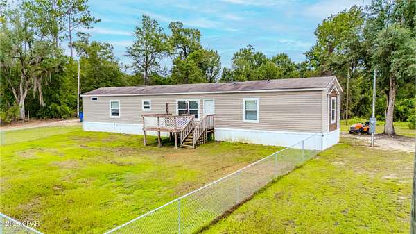 Welcome to your slice of Northwest Florida paradise! This 2021 Clayton 16'x76' mobile home sits on 5 beautiful acres with direct access from Lake Seminole Rd and Howell Rd, both public paved roads. Inside, you'll find a warm farmhouse-style interior with 3 spacious bedrooms and 2 full bathrooms. The living area features a fireplace with remote, flame light, and a 3-speed heat blower, perfect for cozy evenings. Enjoy coffee on the front or back porch, relax in the fenced front yard, and take advantage of the aluminum barn/shed combo for storage, hobbies, or equipment. With acreage spanning between two road frontages, the possibilities here are endless - personal homestead, weekend retreat, or investment property. Just minutes from the water's edge, you'll love fishing, boating, and exploring all Lake Seminole has to offer.