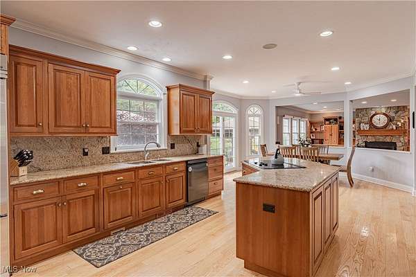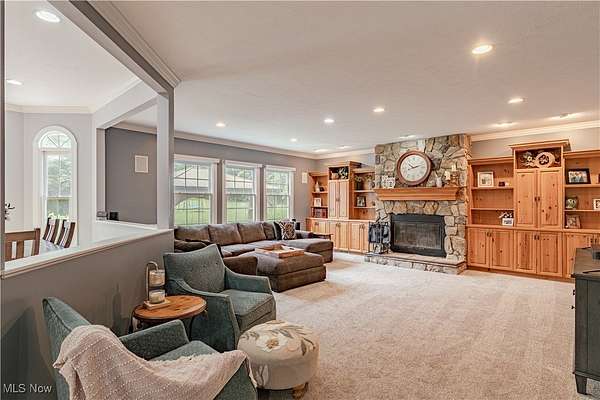 Nestled on three wooded acres on a quiet street, this extraordinary estate combines refined sophistication with the warmth of a true family home. A circular drive framed by mature trees sets the tone, leading to a residence that offers privacy, elegance, and a lifestyle of effortless comfort. Step inside and you are greeted by a dramatic two-story foyer, where gleaming hardwood floors flow throughout the main level. French doors open to a handsome home office, while the opposite side reveals a formal dining room designed for memorable dinners and celebrations. The heart of the home is the expansive gourmet kitchen, perfectly crafted for both daily living and grand entertaining. With two large islands, dual sinks, granite countertops, and a generous walk-in pantry, it is as functional as it is beautiful. The adjoining sun-filled dining area and vaulted sunroom open seamlessly to the patio, creating an easy flow for indoor-outdoor living. Gather in the grand living room, where a striking stone fireplace and custom built-ins set the stage for cozy evenings and lively get-togethers. Upstairs, the luxurious primary suite offers a serene retreat with vaulted ceilings, an oversized walk-in closet, and a spa-inspired bath. Four additional bedrooms, connected by Jack-and-Jill baths, provide space and comfort for family and guests. The walk-out lower level is designed for recreation and relaxation, with a spacious family room, wet bar, game room, and a full bathroom that includes a steam room attachment for a private spa experience-plus a bonus room that doubles as a sixth bedroom. French doors open to a private patio, extending the living space outdoors to your own private sanctuary-an expansive backyard perfect for weekend gatherings and entertaining. With an attached three-car garage and a detached two-car garage, there is no shortage of space for vehicles or storage. A home of rare presence and charm, it's not just a place to live-it's a place to create lasting memories.
