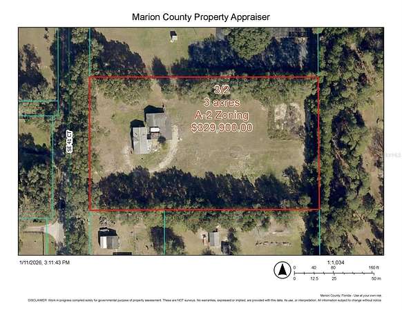 Enjoy the freedom of country living with this well-maintained modular home offering 1,248 heated square feet, situated on 3 fully cleared acres of A-2 zoned land. Conveniently located just east of South US Highway 441 and 80th Street on SE 41st Court, this property provides both accessibility and open space.
