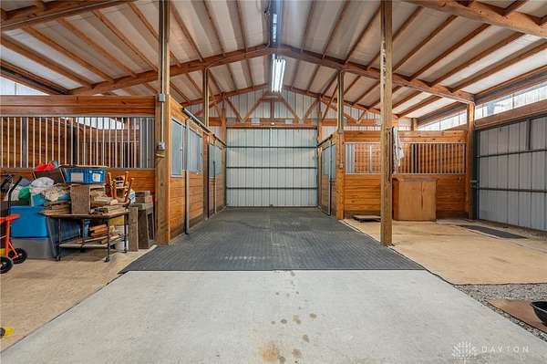 10 acres with approximately 750 feet of frontage. Enter the property to a governors drive leading to a nicely appointed 3 bed, bath and a half home featuring a comfortable covered front porch. There is a first floor bedroom with an adjacent half bath. Updated kitchen (2011) with stainless appliances cherry cabinets with soft close drawers, can lights ceiling fan and porcelain tile floor. The dining room features three built-in corner cabinets, porcelain tile floor, can lights, sliding glass door leading to the deck and rear yard. Large living room with wood burning stove w/ blower, marble mantle, stainless liner. There is also a bay window. Upstairs features two bedrooms with built in's. and an updated (2012) full bath featuring tub, tile surround, vanity, fixtures and porcelain tile floor. There are two walk in closets upstairs, one in hall and one in bed room. Full unfinished basement with walkout. Two car attached garage with closet and newer side entry door. There is buried water and electric to both larger barns and electric to the smaller detached garage. The large metal barn (2002) has two sections. The front features concrete floor, insulated walls, ceiling and insulated doors. Two front roll up doors with high end openers and one door is extra tall. There is an insulated door between the front and rear. The rear has water, three very nice near new condition horse stalls with heavy pads over gravel. The rear barn features four stalls w/ felt on floor, hay loft w/ cardboard covering skylight to prevent bleaching hay, and chests for feed storage and electric fence charger. The smaller outbuilding is a plus sized one car with side shed and has electric. Drainage pond, no fertilizer or chemicals in over 7 years. Mixture of plenty of pasture and woods. Homesteaders delight!!!