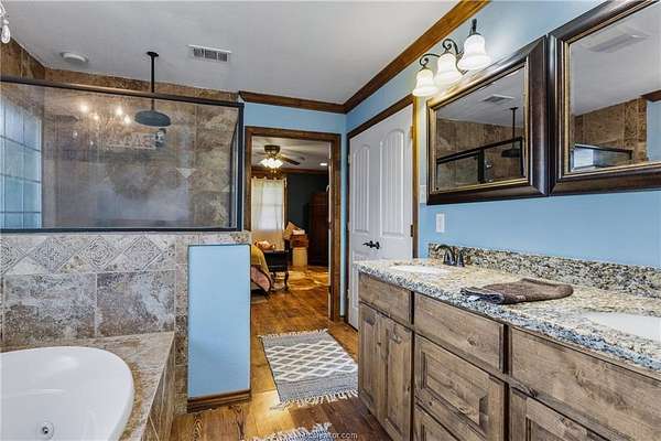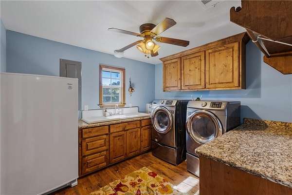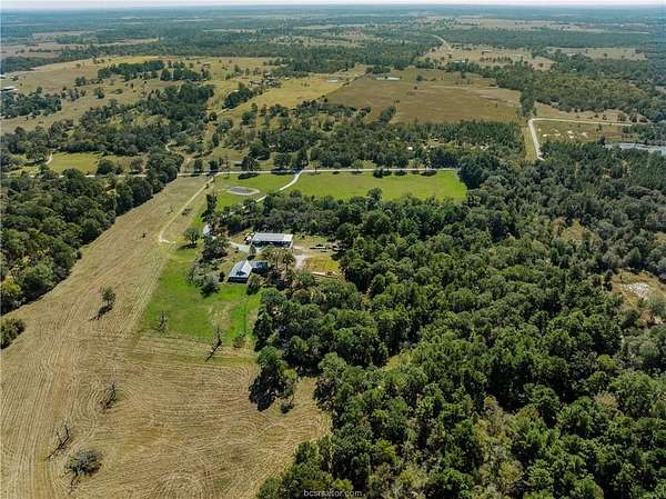 Welcome to your serene country escape! This 4-bedroom, 3-bath home sits on 20 acres, offering the perfect balance of peaceful rural living and convenient access to town. Located just 35 minutes from College Station, Hwy 45 in Huntsville, and Montgomery (AND JUST 10 MINUTES FROM THE FUTURE SITE OF THE BRAZOS VALLEY STATION FOR THE HOUSTON/DALLAS HIGH SPEED RAIL!!), you can enjoy the best of both worlds. Inside, the spacious kitchen is a chef's dream with a stainless steel double oven, dishwasher, center island, and gorgeous backsplash. The home also features a dedicated office and a huge utility room with a custom wash sink. Relax on the wrap-around porch while soaking in the quiet Texas evenings. Outside, a massive industrial-grade work shed and storage area are included, complete with a fuel station- for hobbies, storage, or work projects. Don't miss this opportunity to experience true country living with modern amenities and easy access to town!