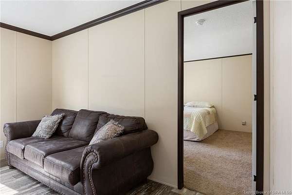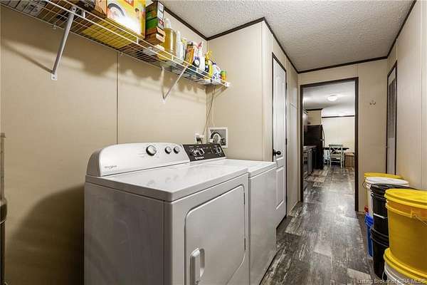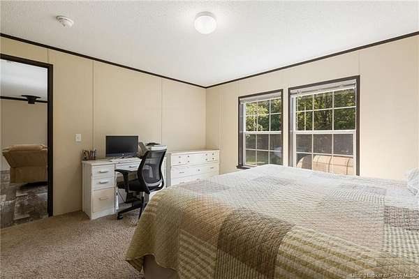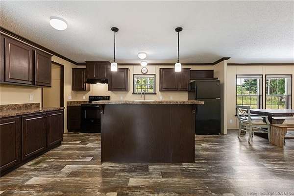 Escape to the perfect blend of comfort and seclusion with this 2024 manufactured home nestled on over 5 wooded acres! This like-new home showcases an inviting open-concept layout with LVP flooring throughout the main living areas, bathrooms, and utility/mud room. The spacious kitchen is a dream--featuring abundant cabinetry, generous counter space, and a center island. The split floor plan offers privacy with 4 bedrooms, making it ideal for family or guests. Outside, enjoy nature at your doorstep--whether it's tending the garden, watching the wildlife, or entertaining outdoors. The Miller Mini Barn provides extra storage, and for peace of mind, a storm shelter with an outside entrance accommodates up to 20 people. If you've been searching for privacy, functionality, and modern living in a tranquil wooded setting--this property has it all! Living room also has a woodstove hookup!!! Buyer(s) agent to verify taxes, exemptions, HOA/restrictions and school system. All measurements are approximate. If important, buyer(s) or buyer(s) agent to verify.