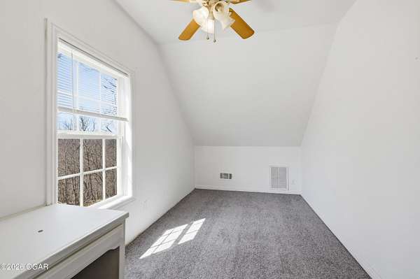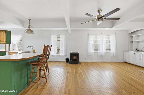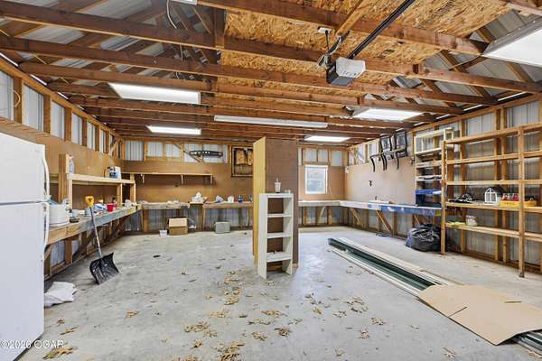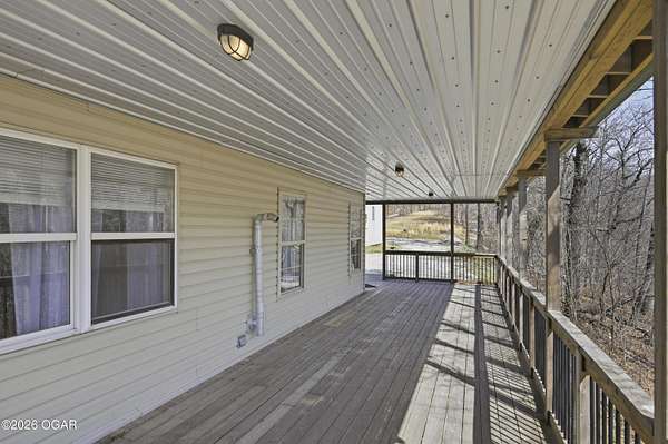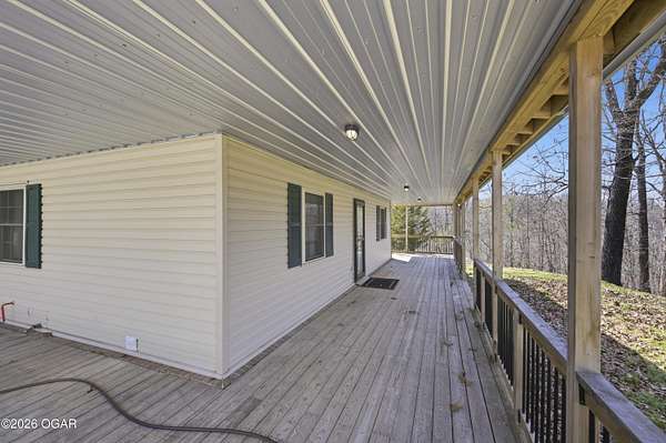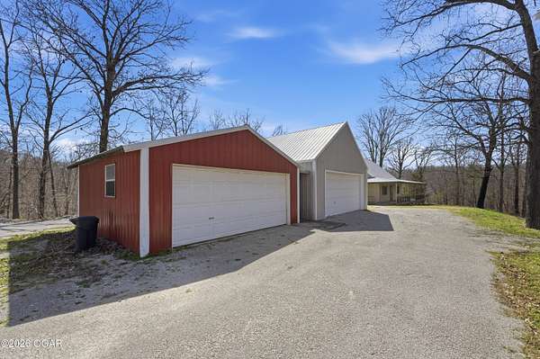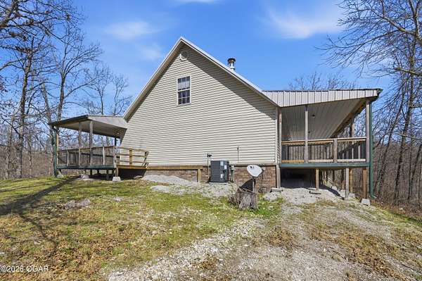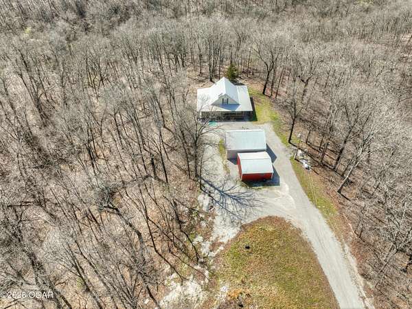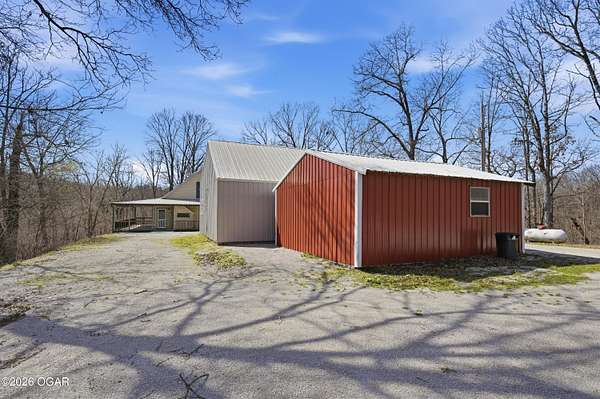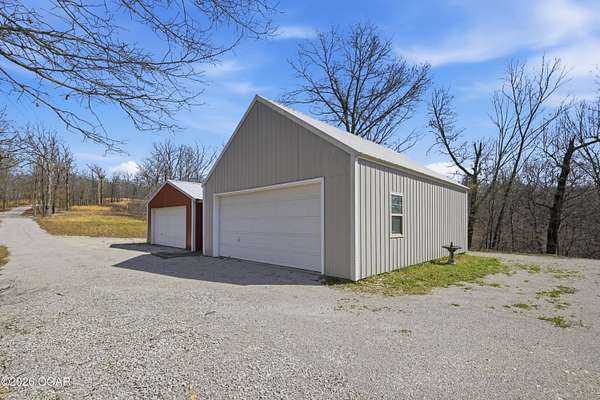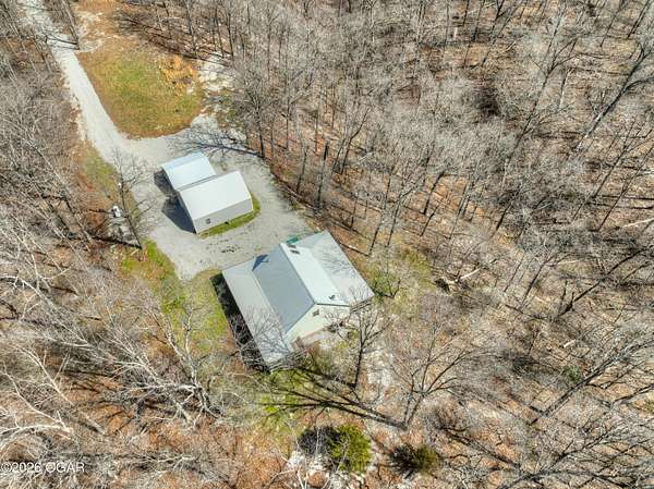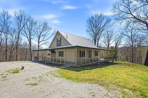 Escape to the quiet beauty of McDonald County at 779 Burford in Noel, Missouri, where this secluded 3 bedroom, 2 bathroom home sits on 10 wooded and hilly acres just 3 miles from I 49 Exit 2. Built in 2002 and offering approximately 1500+ SF this all electric home is ideal as a primary residence or a peaceful weekend retreat surrounded by dense forest, abundant wildlife, and frequent deer and bird sightings with plenty of space for hunting or shooting areas. Full of charm, the home features hardwood floors, a cozy fireplace, and a pellet stove installed in 2024. The spacious open main floor includes a well appointed kitchen with wood cabinets, kitchen island with barstool seating, and included appliances such as stove, refrigerator, washer, dryer, and even a garage refrigerator. The adjoining living room offers built in cabinetry and a warm, inviting feel. The main level also includes a bedroom and a convenient full bathroom and laundry combination. Upstairs, the primary bedroom features a built in desk and en-suite bathroom, along with a third bedroom. A jetted tub adds a relaxing touch. Recent updates include a new electric furnace and AC in 2021, new gutters in 2025, new security system in 2025, and new carpet in 2026. The home also includes a whole house propane generator installed in 2023 with owned tank, private well, septic system, and crawl space foundation. Enjoy the outdoors from the expansive four sided covered porch with approximately 1100 square feet and a new roof in 2024. The property also features two detached two car garages (24x30' & 22x20') for a total of four garage spaces. The acreage is mostly wooded and has been survey platted. Located near Rush Springs Ranch and within easy reach of Elk River floating, Bentonville, Rogers, and Springdale, this property offers convenient access to Northwest Arkansas attractions like Crystal Bridges Museum, bike trails, Beaver Lake, and more, while still providing the quiet and privacy you have been looking for.