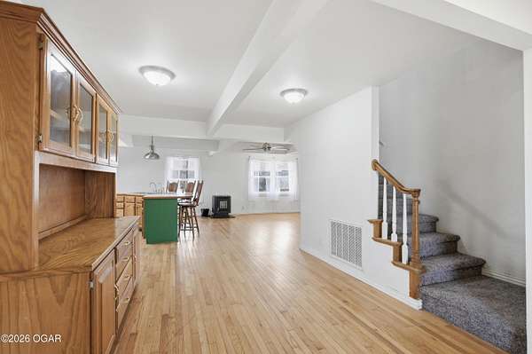 - Ceiling Fan(s), Kitchen Island, Laminate Counters