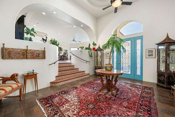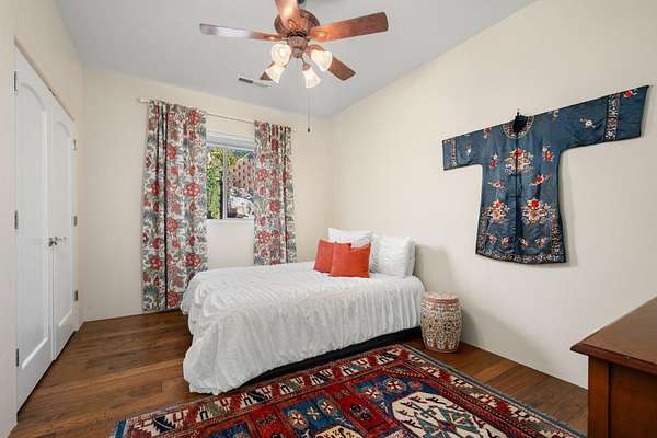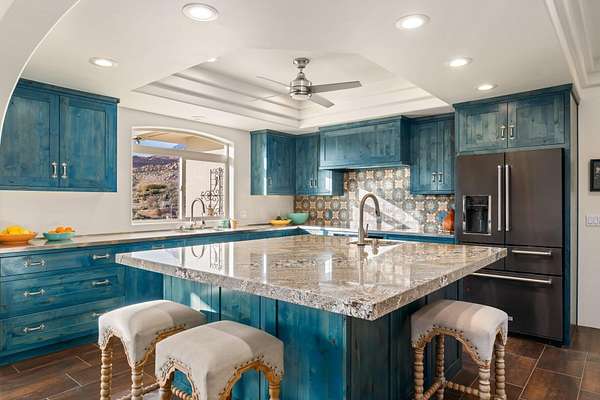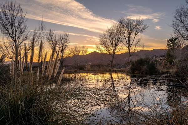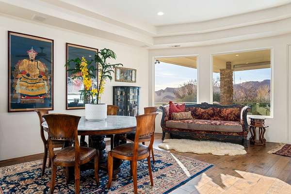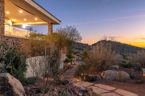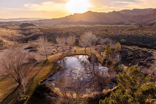Private 34+ acre gated Southern Utah estate offering rare seclusion, sweeping red rock views, and unobstructed open sky at the end of a paved road. Built by Mark Fahrenkamp in 1999 and extensively updated, the 3-bedroom, 3-bath home with den features a dramatic great room and expansive glass-railed deck capturing stunning sunsets. Below the home, a peaceful bass and bluegill stocked pond with lily pads and gazebo creates a serene retreat. The main residence offers a desirable split-bedroom layout with a spacious primary suite featuring two walk-in closets (one with built-in safe) and a custom bath with dual sinks and walk-in shower. Two additional bedrooms each offer nearby or private 3/4 baths. Major 2017 updates include an enclosed back porch with Indian Temple Door, Art Nouveau fireplace, remodeled kitchen and primary bath featuring custom hand made ceramic tile by K.J. Patterson and new flooring throughout. The gourmet kitchen features a large solid granite island, stainless steel countertops, built-in Wolf induction cooktop and oven, touch-activated sinks, integrated-panel dishwasher, walk-in pantry, and a flexible office/butler's pantry/laundry space. The home connects to an attached 2-car garage with utility sink and laundry hookups. Designed for privacy and flexible living, the property includes a converted cold storage basement into a private mother-in-law apartment with separate entrance providing a 4th bedroom and bathroom, kitchenette, full bath, walk-in closet, and studio space. Additional features include an RV garage with mezzanine and multiple entry points, a barn garage (both built into bedrock), plus a bathroom located in the garage/workshop loft. The home is equipped with a whole-house generator with 500-gallon propane tank, two HVAC systems, three hot water tanks, whole-home vacuum and water softener, fire pit, greenhouse, caged garden beds, and drip irrigation. The property includes six culinary water allotments with ASSSD, 1.75 irrigation shares with Leeds Water Company, spans three parcels, and offers future subdivision potential (buyer to verify). A rare opportunity to own a secure, private retreat combining luxury living, water, infrastructure, and long-term self-sufficiency in Southern Utah.