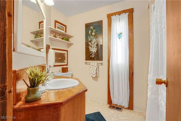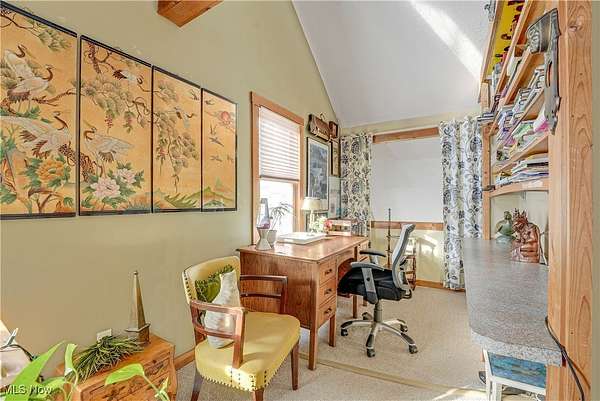 Discover a truly unique find in the city of Kirtland. Situated on a generous 2-acre lot, this 2-bedroom, 2-full bathroom home offers a wonderful blend of rustic charm and functional space. Whether you are looking for a home that is ready to enjoy as-is or seeking a "cozy canvas" with tons of potential to customize, this property is ready for your vision. Step through the front door into the airy living room, defined by vaulted ceilings, warm hardwood floors, and a wood-burning fireplace that serves as the heart of the home. The open-concept design flows seamlessly into the kitchen-perfect for the chef of the family-and an adjacent dining area. The main level also features a spacious laundry room and slider access to the back patio for easy indoor-outdoor living. The upper level offers a versatile layout, including a loft/office area, a secondary bedroom, and a second full bath. A unique architectural feature is the elevated loft space above the bedroom and bathroom, providing ample bonus storage. The highlight of the home is the expansive primary suite. This retreat features a huge walk-in closet, an en-suite bathroom with a full walk-in shower, and a flexible utility room currently utilized as a crafting space. The suite opens onto a private deck, offering peaceful views of the property. The exterior features an established garden area and an oversized barn/outbuilding ready for hobbies or storage. The 2-acre lot offers a mix of cleared land and mature trees, providing a natural privacy screen. While the home offers quick access to main roads via a major intersection, the tree line creates a buffer from the hustle and bustle. To respect the privacy of the occupants, physical showings will be scheduled only after an offer has been accepted. We have provided a comprehensive Matterport 3D tour to facilitate a detailed virtual walkthrough. Please submit offers subject to interior inspection: