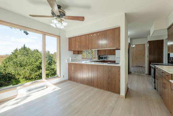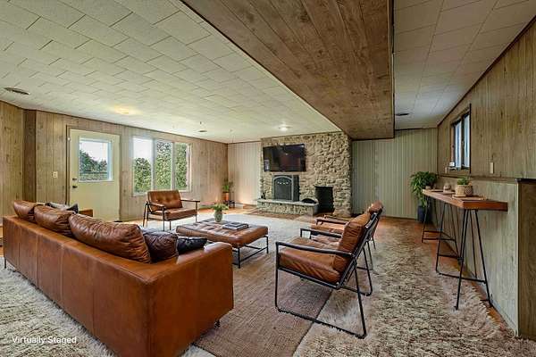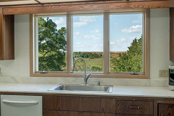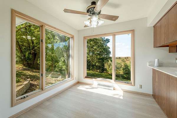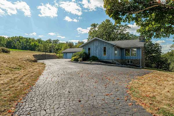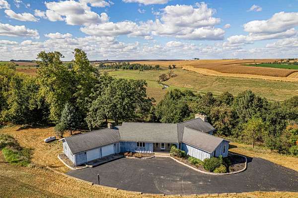Stylish, spacious & serene! This 3 bed, 3.5 bath ranch w/ an oversized 2 car garage sits on 3.25 private acres with countryside views for miles. Inside you'll find a welcoming foyer, vaulted great room w/stone fireplace, dining room with expansive views, large eat-in kitchen, cozy den w/fireplace, half bath, generous laundry/utility room, updated full bath & a primary suite w/ a remodeled bath. Bright spaces, built-ins, newer windows & new flooring add appeal. The walk-out LL offers 2 more bedrooms, full bath, sprawling family room & huge rec room, ready for your finishing touches, ample storage and even a cast-concrete security room/storm shelter. Bonus: new gutters w/ leaf guards, newer well, etc. Schedule your showing today!