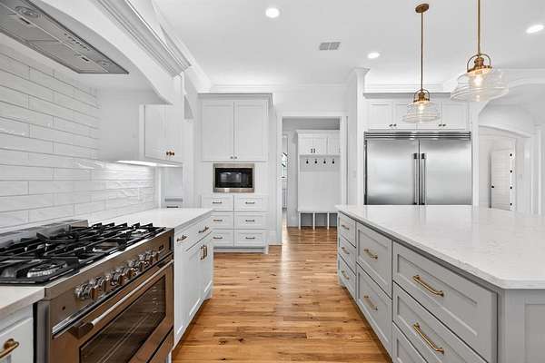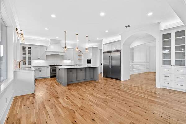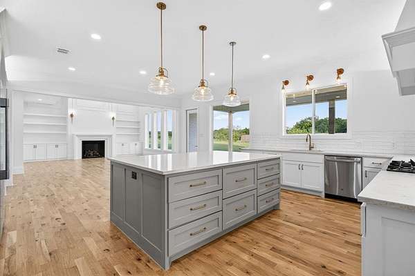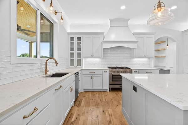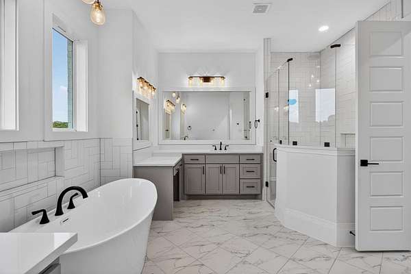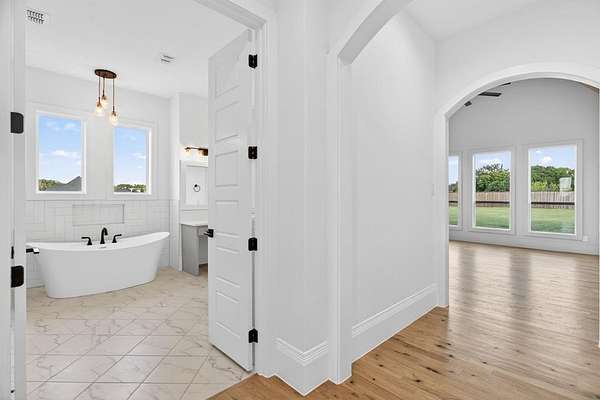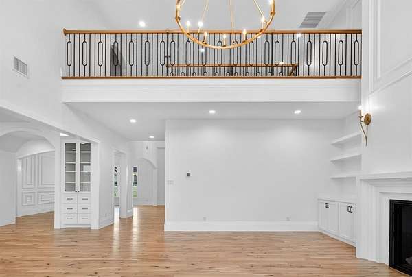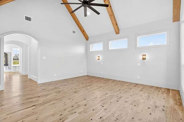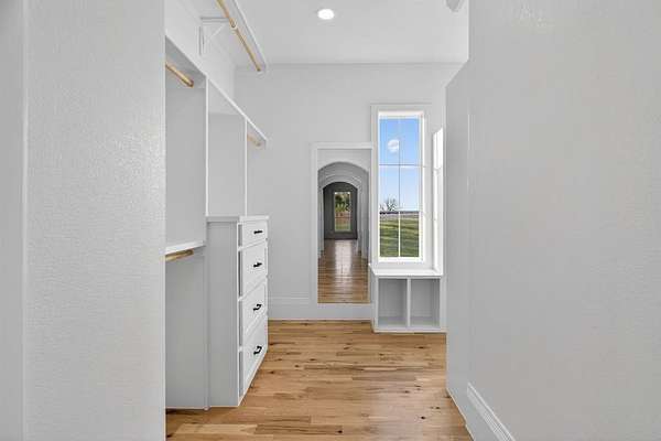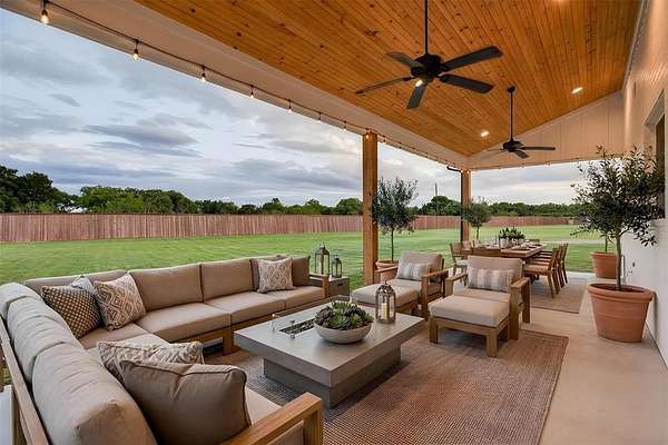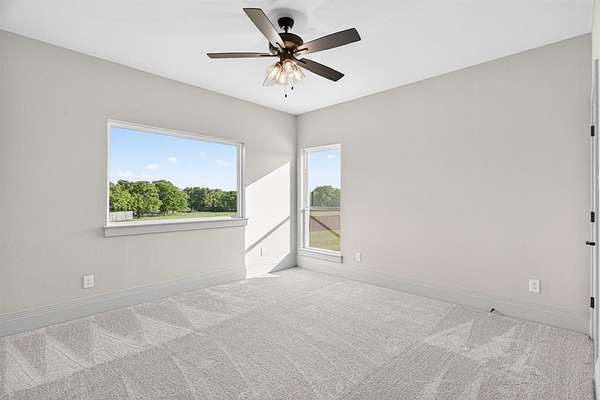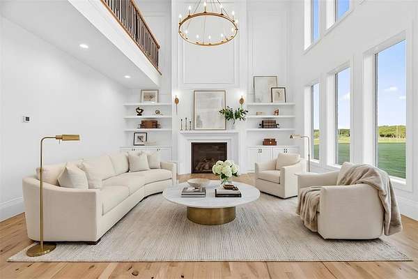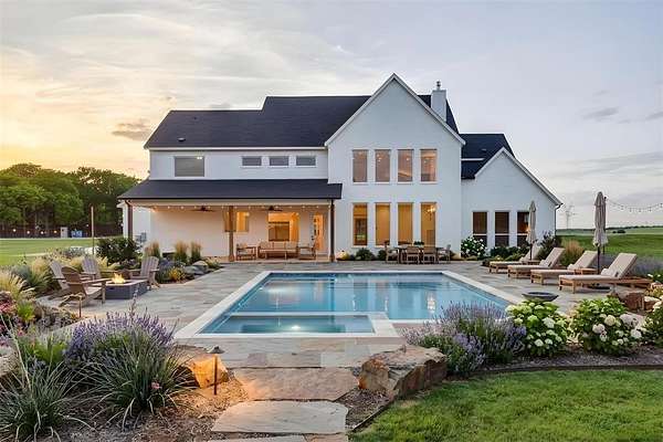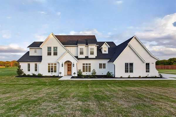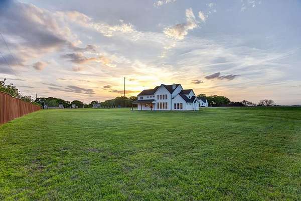 Welcome to Remington Home's model home built for Aledo ISD's Woodland Meadows. This stunning custom home is loaded with over-the-top upgrades and timeless design features. Whole-house foam insulation, 17 SEER Trane HVAC, recirculating hot water, Smurf tubing for HDMI-CAT6 wiring, and an extraordinary finish-out sets this home apart. From the curb, its crisp white façade, architectural uplighting, and sweeping rooflines make an unforgettable first impression on a wide 2+ acre lot. The interior - completely elevated - with an airy, neutral palette, white oak floors, custom casements, built-ins, sophisticated lighting, and walls of windows. The thoughtful first-floor plan has it all: a dedicated office, elegant formal dining, a dramatic two-story living room with a stately fireplace and custom built-ins, plus a spacious chef’s kitchen with level 5 quartz counters and tile backsplash featuring an additional work station, oversized pantry, 6-burner gas range, and Frigidaire side-by-side refrigerator and freezer. The owner’s suite is in a class of its own—vaulted beamed ceiling, abundant natural light, sconce lighting, a custom walk-in closet, and a spa-like ensuite bath that checks every box. Upstairs you’ll find four additional bedrooms, two beautifully appointed bathrooms (with a total of four sinks), a large second living room perfect for movie or game night, and the ultimate convenience: a second laundry room. The backyard offers room to create your vision—whether that’s a pool, workshop, or casita. (Yes, the builder can make it happen.) Best of all: NO city taxes, NO MUD, NO PID—plus the efficiency of well water and septic. Luxury living, country setting, and unmatched model-home upgrades make this property truly one of a kind, and an incredible value for a discerning buyer!