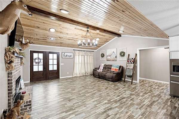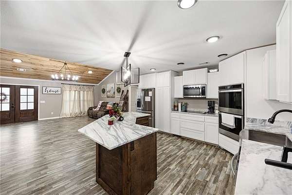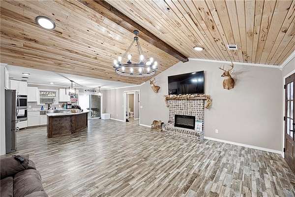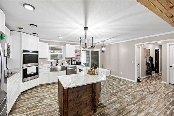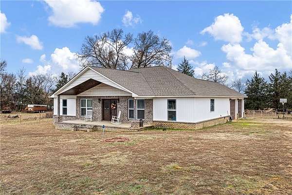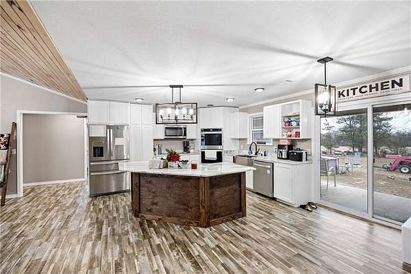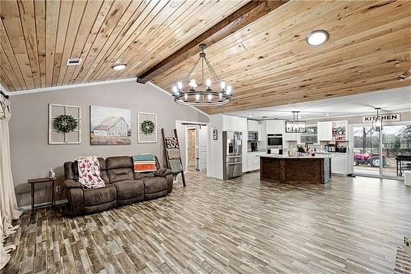 Beautiful 1,926 sq. ft. home featuring 3 bedrooms and 2.5 baths, perfectly situated on 13.84 acres of fenced pasture. Step inside to an inviting open-concept floor plan highlighted by wood-trimmed ceilings and ample space ideal for both everyday living and entertaining. The spacious kitchen offers a large island and custom floor-to-ceiling cabinetry, providing both functionality and style.