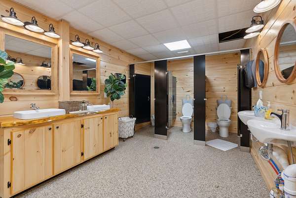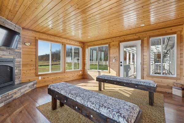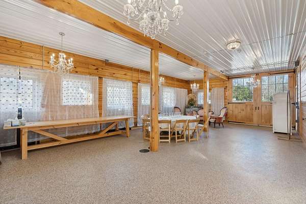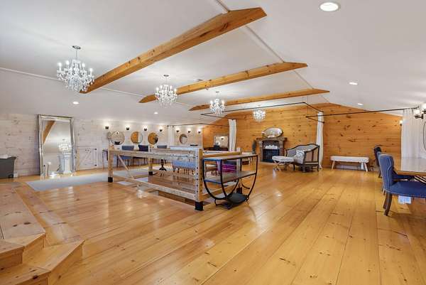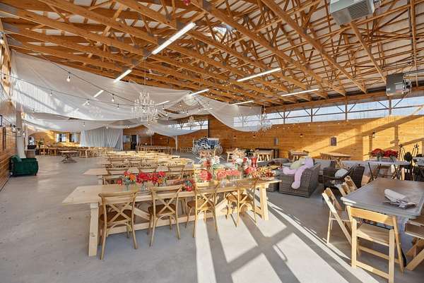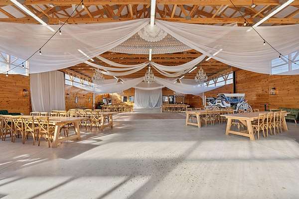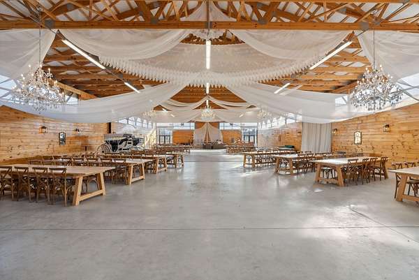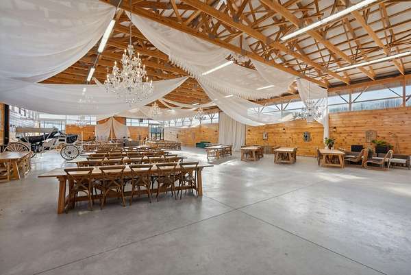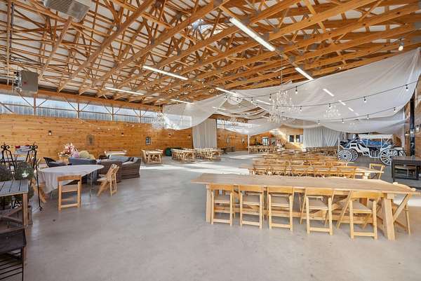 This phenomenal home is sitting on over 28 acres w/ horse stalls, riding pens & a stocked trout pond. You'll always have something fun to do here. This gorgeous home offers lots of space, 5-6 bedrooms, & beautiful finishes. Lovely landscaping & white fences. Large garage for 4 cars w/radiant heat, & a pull thru overhead door to the back. Beautiful deck w/ pergola looks out to the back acreage, perfect for watching wildlife. Inside you are greeted w/ a large family room w/ lots of windows. 180x 320 ft riding arena, w/ announcer booth/ tree stand for hunters. The well-appointed kitchen features a stone island, double pantries, & a cozy sunroom off the rear to watch Sunday games or simply to enjoy the gas fireplace. First floor laundry & a beautiful formal living room w/ built in cabinets. First floor primary bedroom w/ a gorgeous en suite bath w/ tile steam shower, soaking tub, & double vanities. Upstairs there is a fantastic family room, perfect for games, a theater, office or workout space & a large bonus room. In the daylight basement is an additional kitchen, full bath w/ laundry, & 3 additional rooms. Stand by generator. This property also features modern barn venue, which could also be used for many other business & activities. Beautiful grounds include a fountain, hardscaping, & lovely gardens. This building has an upscale finish w/ rustic flair. Generous parking in the rear. High ceilings give a spacious feel to the 7,200 sq ft main floor. Next to the main floor is an additional space that includes a kitchen area w/ commercial fridges, a bar area, & multiple bathrooms including a handicap accessible bathroom. Upstairs is a room that was used for a bridal suite, but it could be used as a conference space as well. Outdoor seating under pergolas & garden lights. Beautiful setting for photographs. Separate 5 car garage & mobile home for storage. Generator on site. So many possibilities with this property.