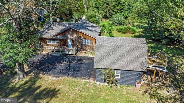 Here's your rare chance to own a secluded property tucked away off the beaten path, surrounded by 1.74 acres of peace and privacy with a backdrop of mature trees. This charming ranch-style home comes complete with an oversized garage featuring a loft - the perfect setup for a workshop, man cave, or she-shed getaway! Step inside and you'll find thoughtful updates designed for comfort and convenience. The private main bedroom boasts its own en suite bath, while two additional bedrooms and a full hall bath offer plenty of space for family or guests. The stunning great room with its vaulted ceiling and striking brick, wood-burning fireplace creates the ultimate cozy gathering spot. The freshly updated, spacious eat-in kitchen flows seamlessly to the back deck, where you'll enjoy morning coffee, evening dinners, or simply soaking in the natural beauty of your own backyard oasis. This home truly offers that "vacation every day" lifestyle without ever leaving your property. With countless updates and improvements already made, all that's left to do is move in and make it your own. And the best part? You're just minutes from major highways, making commuting to Delaware or Pennsylvania a breeze while still enjoying the tranquility of country living. This property is OUTSIDE of the Special Flood Hazard Area = Flood Insurance is an option! Property is hooked into PUBLIC SEWER AND WATER! Don't miss this one - schedule your tour today!