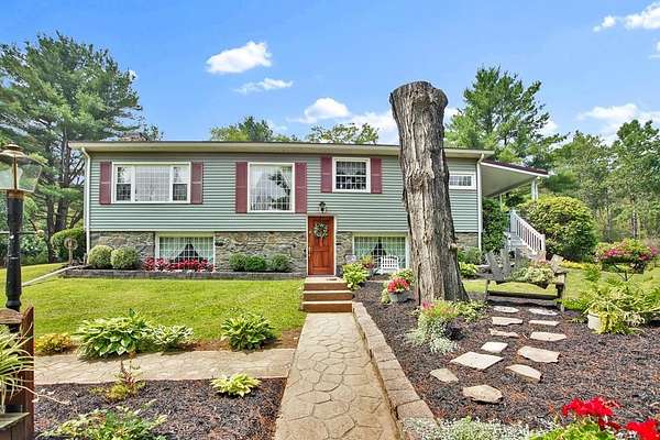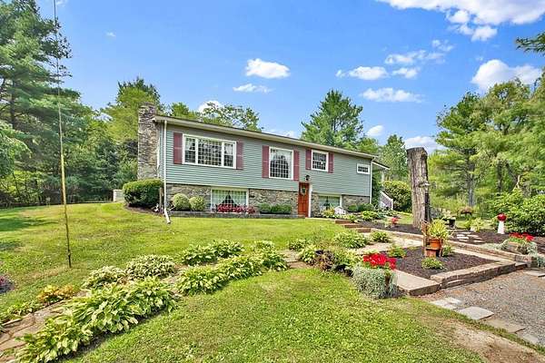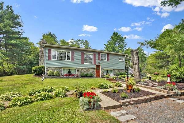 Another price improvement! Splendid home in the PA countryside! Split level/raised ranch, 18.4 acres, includes oil, gas and mineral rights, 3 bedrooms and full bath, 2 wood burning fireplaces, and a warm, inviting interior that makes you want to stay forever. Fantastic setting at the end of a private lane, offering complete privacy and quiet surroundings, but includes public sewer and a stand-by generator. Two covered porches allow for lots of quiet outdoor time to relax and watch the deer and other wildlife that are very frequent visitors, or you can move to the gazebo out front near to the patiently landscaped flower beds. New furnace/central air installed in October 2024, and a recently updated metal roof. Need lots of garage space? Three bay, oversized garage with finished walls and an upstairs room for a workshop or storage. If you are seeking seclusion, great hunting/outdoor space, yet also want to be close to Elmira, Corning or Mansfield, then call now to see this home!