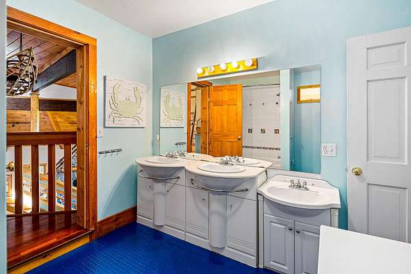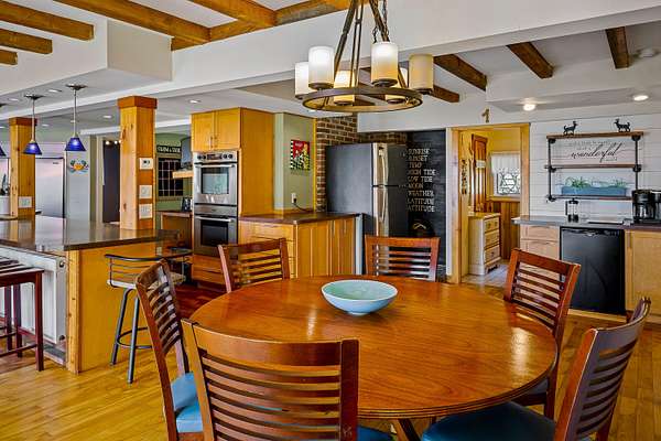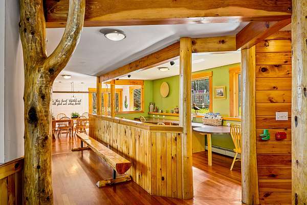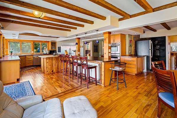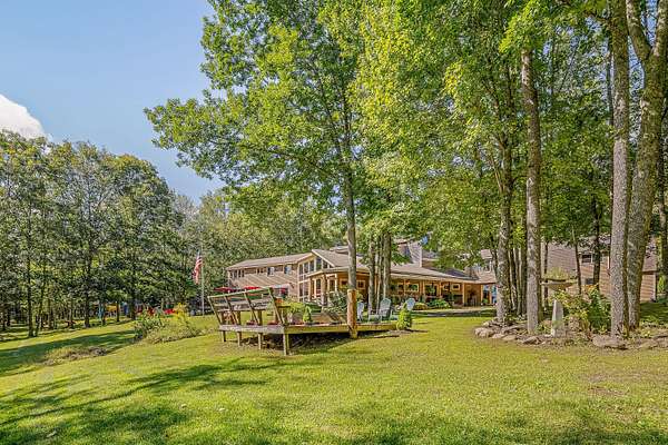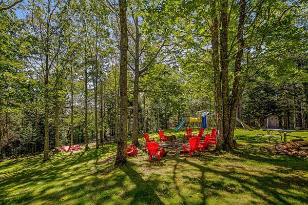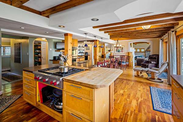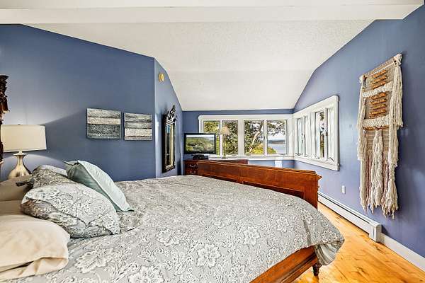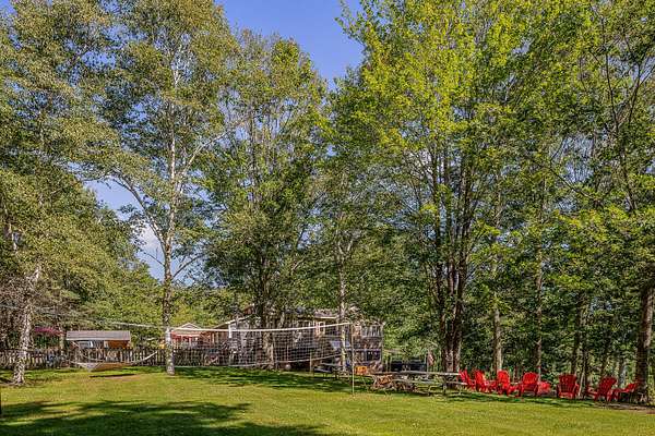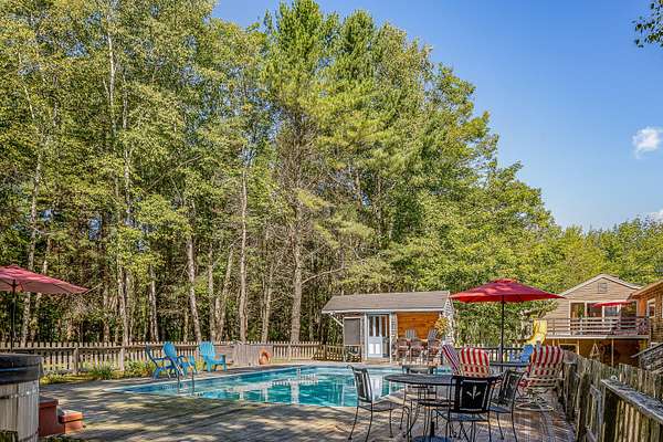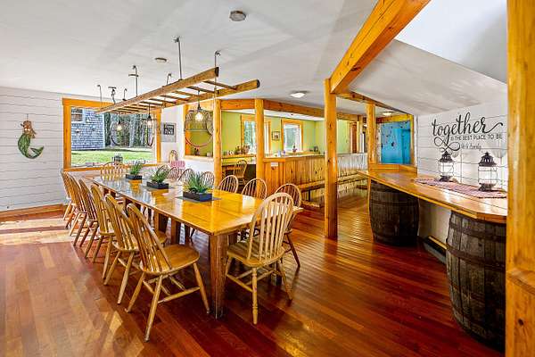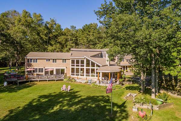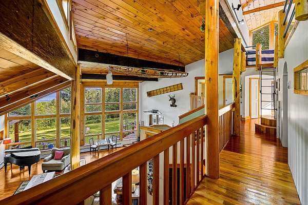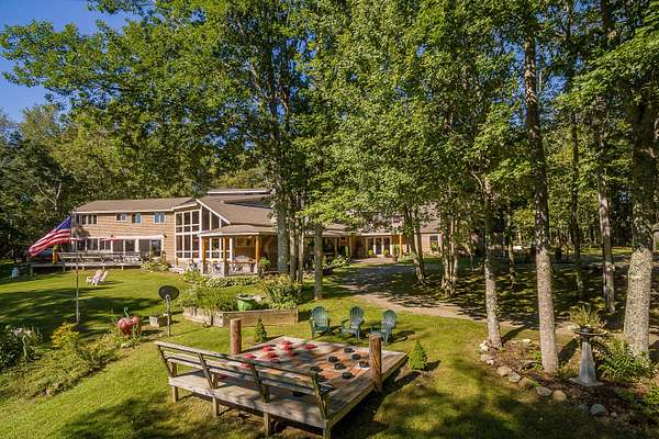 This exceptional private one-of-a-kind estate overlooking Penobscot Bay blends natural materials and custom architecture throughout. Massive tree trunk timbers and exposed supporting beams rise to meet curved archways, while custom cherry, rosewood, maple and oak flooring showcase the exquisite craftsmanship throughout this magnificent home. Floor to ceiling windows reaching 26 feet high and a granite fireplace, frame dazzling ocean views. The chef's dream kitchen, with a walk-in pantry, is perfect for entertaining, and opens to a wrap-around deck overlooking the bay. Your private compound awaits with family friendly resort style amenities such as an in-law apartment with kitchen, game room, in-ground heated swimming pool, hot tub, outdoor shower, manicured grounds, outdoor fire pit, two swing sets, tether ball court, sandbox, and putting green. With unparalleled views and an exceptional rental history this property is a rare investment opportunity which blends luxury, comfort and natural beauty.