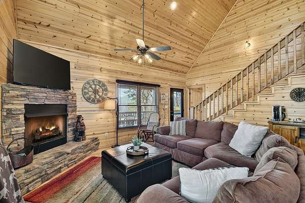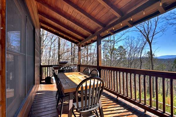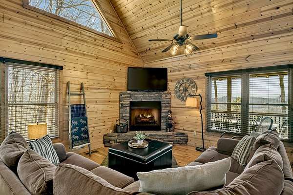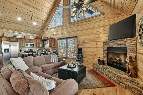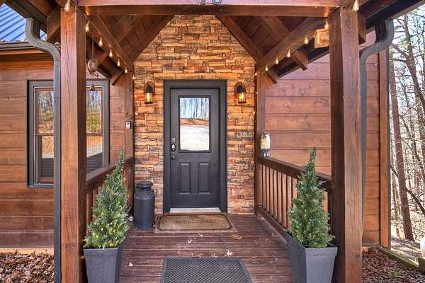 Welcome to 78 Brass Hill Road, a turn-key mountain retreat just minutes from downtown Blue Ridge, Georgia, offering easy access to shopping, dining, wineries, and nightlife. This beautifully appointed cabin features three bedrooms--one on each level--each with a private bath, providing ideal privacy for owners and guests alike. The primary suite upstairs is a true sanctuary, complete with a private balcony showcasing long-range mountain views and a spacious ensuite bath. The main level offers an open-concept layout with a well-equipped kitchen featuring island seating, dining area, and a great room with a cozy gas-log fireplace. Step out onto the walk-out deck to enjoy additional living space and unobstructed mountain views. Laundry is conveniently located on the main level. The terrace level includes a guest suite, large recreation room with games and pool table, and access to an outdoor patio with hot tub, plus a private fire pit area perfect for entertaining. Ample parking and thoughtful outdoor spaces enhance the mountain lifestyle. Currently operating as a successful short-term rental, this property is being sold fully furnished and turn-key, making it an excellent investment opportunity or personal getaway. Mountain views, location, and income potential--this one has it all!