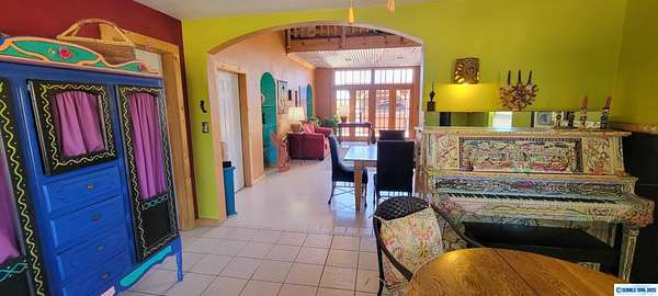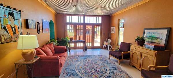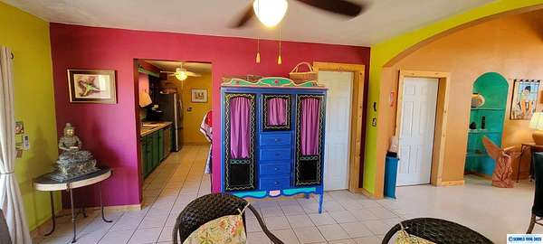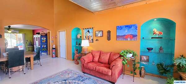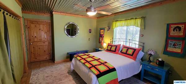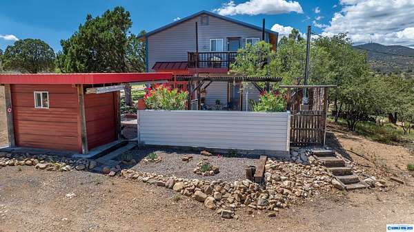 One-of-a-kind artist's home at the base of the Burro Mountains, perfectly sited on over 10 stunning acres with views in every direction. This colorful and creatively inspired 3 BD, 2 BA home includes vibrant finishes, custom shelving, French doors, and artistic details throughout. The spacious main-floor bedroom opens to a peaceful courtyard, while the upstairs primary suite features a private balcony and direct access to a spectacular loft studio or office. A fourth room without a closet offers flexible space for a guest room, studio, or office. Enjoy outdoor living on the beautiful patio under endless skies. The property includes a new, fully wired shop, carport, a storage shed, and a brand-new septic system (2025). Located at the end of the road for privacy and seclusion, very close to an easement allowing access to nearby Gila National Forest lands. Approx. 20 miles from Silver City. Seller is related to broker.