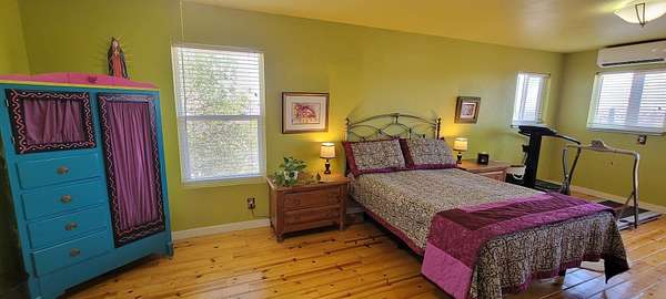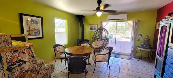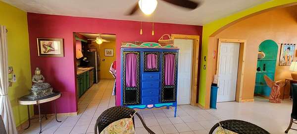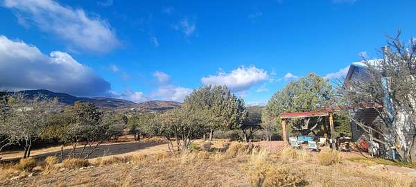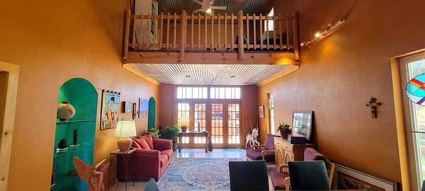 One-of-a-kind artist's retreat at the base of the Burro Mountains, set on over 10 stunning acres with sweeping views in every direction. This colorful, creatively inspired 3-bedroom, 2-bath home features vibrant finishes, French doors, custom shelving, and artistic details throughout. The main-floor bedroom opens to a peaceful courtyard, while the upstairs primary suite offers a separate balcony room and direct access to a dramatic loft-style studio or office. A 4th room (without a closet) provides flexible space for guests, a studio, or an office. Enjoy outdoor living on the spacious patio under endless skies. Property includes a new fully wired shop, carport, storage shed, and a brand-new septic system (2025). End-of-the-road privacy with nearby easement access to Gila National Forest lands. Approx. 20 miles from Silver City. Seller is related to broker. Easy to see!