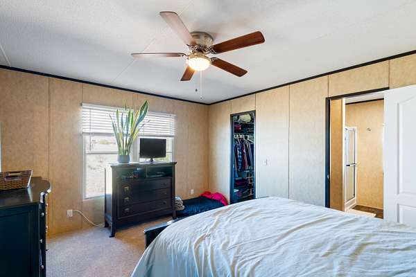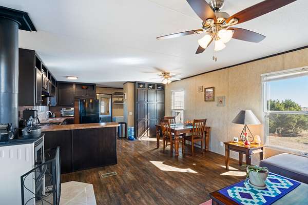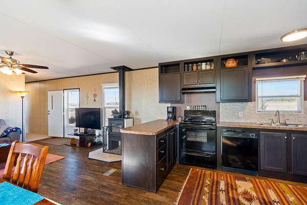Private 40-acre Edgewood retreat with sweeping mountain views, stunning sunrises and sunsets, on a quiet road with minimal traffic. Clean, well-maintained 2016 Clayton home on a permanent foundation offers 3 BR / 2 BA with refrigerated A/C, electric forced air heat, and woodstove for backup and ambiance. Ideal for homesteading or country living with a private well, 3,000-gallon cistern, septic, and garden area with drip irrigation ready for spring planting. Additional features include a 3-car carport, 40' storage container, two greenhouses, and a chicken coop/run (chickens may convey). Recent updates include a metal roof (2024), water heater (2024), refrigerator (2025), and carpet (2025). Seller financing may be available with acceptable terms.