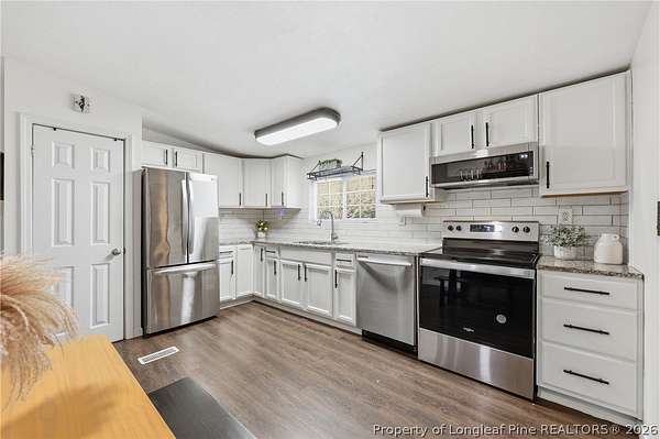 Located in Heritage Village, this completely renovated ranch is move-in ready! The spacious eat-in kitchen features new granite countertops, a stylish tile backsplash, and updated appliances. Enjoy new flooring throughout and a great room with a cozy fireplace. The primary suite boasts a private bath with a dual vanity, separate tub, and shower. Two additional guest bedrooms share an updated bath with granite counters and newer fixtures. A durable 50-year tin roof adds lasting value. Outdoor spaces include a covered front porch, rear deck, and a wired 8x12 shed. A wired 20x26 garage provides ample storage, workspace or the home gym you've always dreamed of. HVAC replaced in 2022. Nestled on a cul-de-sac, this home offers both privacy and convenience. Part of the backyard is fully fenced in.