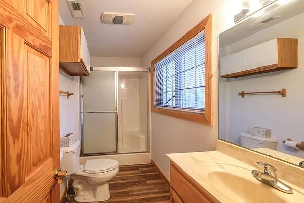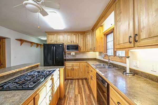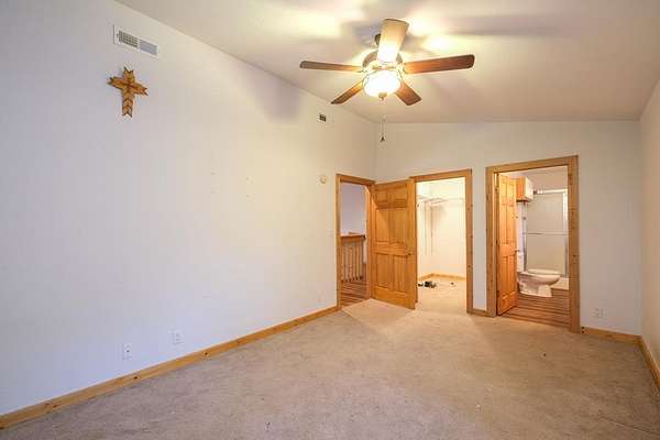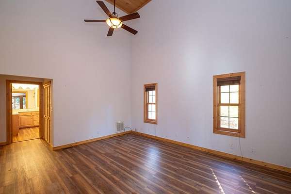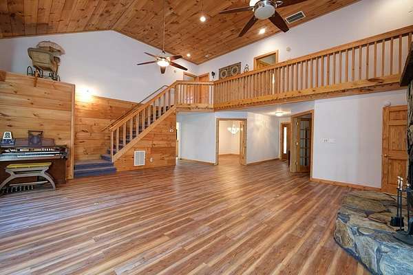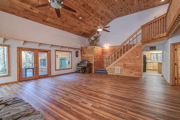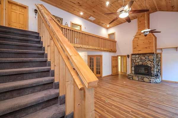 This home is a true standout--better than the competition and priced to move! Enjoy INCREDIBLE PRIVACY on over TWO acres while still benefiting from a PAVED, well-maintained community. The spacious layout offers 2 bedrooms, 3.5 baths, and 2 versatile bonus rooms with their own closets, giving you plenty of room. The heart of the home is the impressive living room featuring a STONE FIREPLACE, soaring tongue-and-groove vaulted ceiling, and rich wood flooring throughout. Large picture windows bring the outdoors in and create a bright, inviting space. A formal dining room and cozy den flank the foyer, offering great flexibility for entertaining or everyday living. The kitchen is both functional and attractive, complete with a two-tier island, black appliances including a double oven and range top, and abundant cabinet and counter space. A convenient half bath, laundry room with built-ins, and direct access to the OVERSIZED TWO CAR GARAGE make daily life easy. The MAIN LEVEL MASTER SUITE delivers comfort and space with a vaulted ceiling, huge walk-in closet, double vanities, and tiled step-in shower, plus private access to the covered porch and back deck overlooking your quiet, wooded retreat. Upstairs, another large suite, bonus room, and walk-in storage provide even more flexibility. Upgrades include a METAL ROOF, WHOLE-HOUSE GENERAC GENERATOR, GUN SAFE, FIBER OPTIC INTERNET, and a partially fenced yard. With level land, excellent access, and total PRIVACY, this property combines mountain living, modern comfort, and practical design in one unbeatable package. Move fast--homes like this rarely come along. Schedule your showing today before it's gone!
