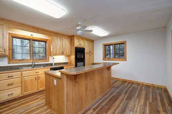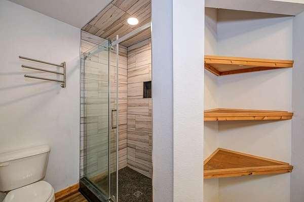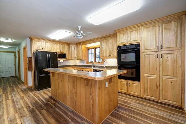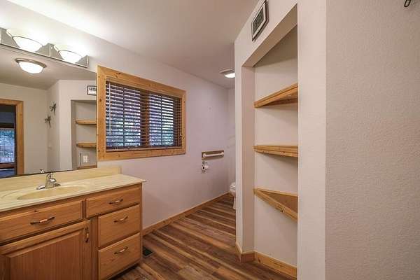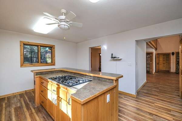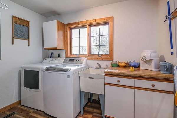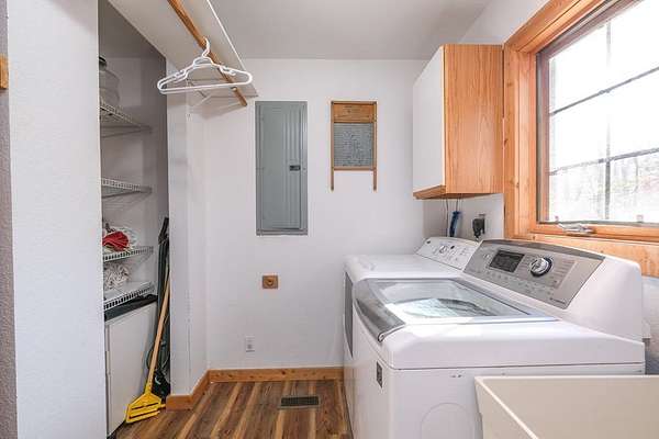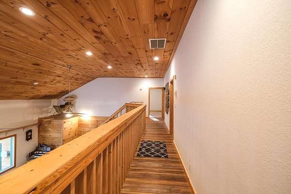 - Ceiling Fan(s), Double Vanity, Kitchen Island, Laundry On Main, Primary On Main, Smoke Detector, Tile Shower/Tub, Vaulted Ceiling(s), Walk-In Closet(s), Washer/Dryer Connection, Wood Ceiling(s), Wood Walls