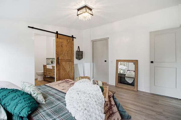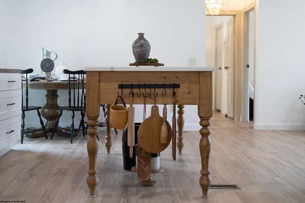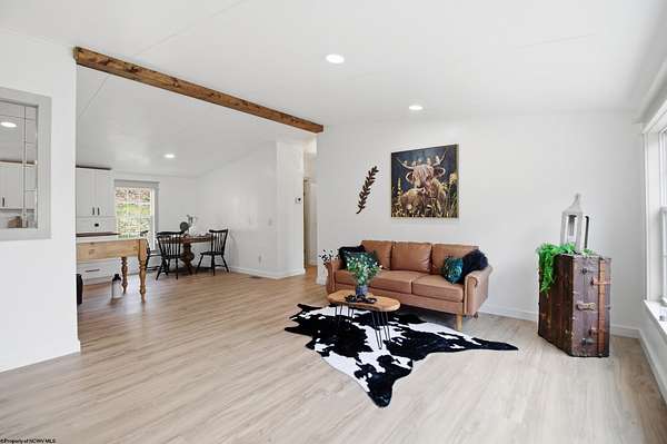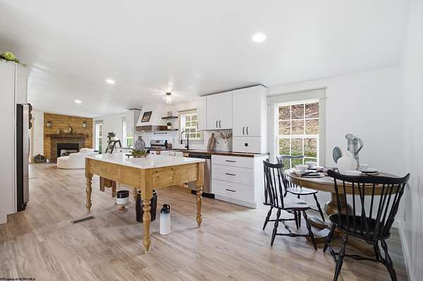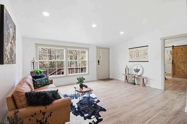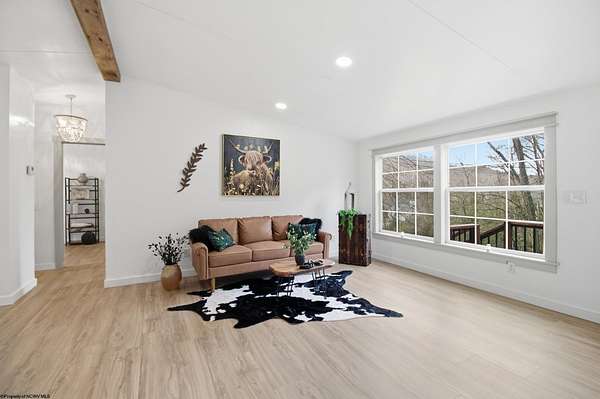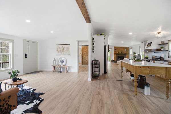 Single-level living on 10 lots offering a private setting and convenient access to Rt. 50. This beautifully updated 3-bedroom home features a metal roof, modern farmhouse style sinks, recessed lighting, updated lighting fixtures, and new laminate flooring. The kitchen includes a custom island and custom spice drawers for added organization and functionality. The spacious layout offers a dedicated mud room/laundry room with a separate entrance, and both the laundry area and primary bath feature stylish farmhouse-style doors. The primary suite includes an oversized shower with low-threshold entry, and each bedroom offers a large closet. Outside, you'll enjoy peace & quiet on a large, covered 12'x21' deck, with ample storage space near the front door and additional attic storage above the deck, along with a separate storage shed across the driveway, all providing convenience. Recent improvements provide a fresh, modern feel while maintaining functional comfort.